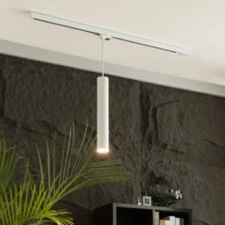 Dimmbare 3-Phasen-Schienen-Hängeleuchte Ejona in Weiß, Lichtfarbe verändert sich beim Dimmen