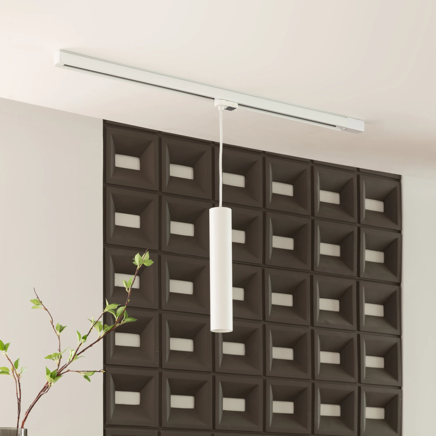Weiße Pendelleuchte Ejona für 3-Phasen-Schiene, runde Zylinderform