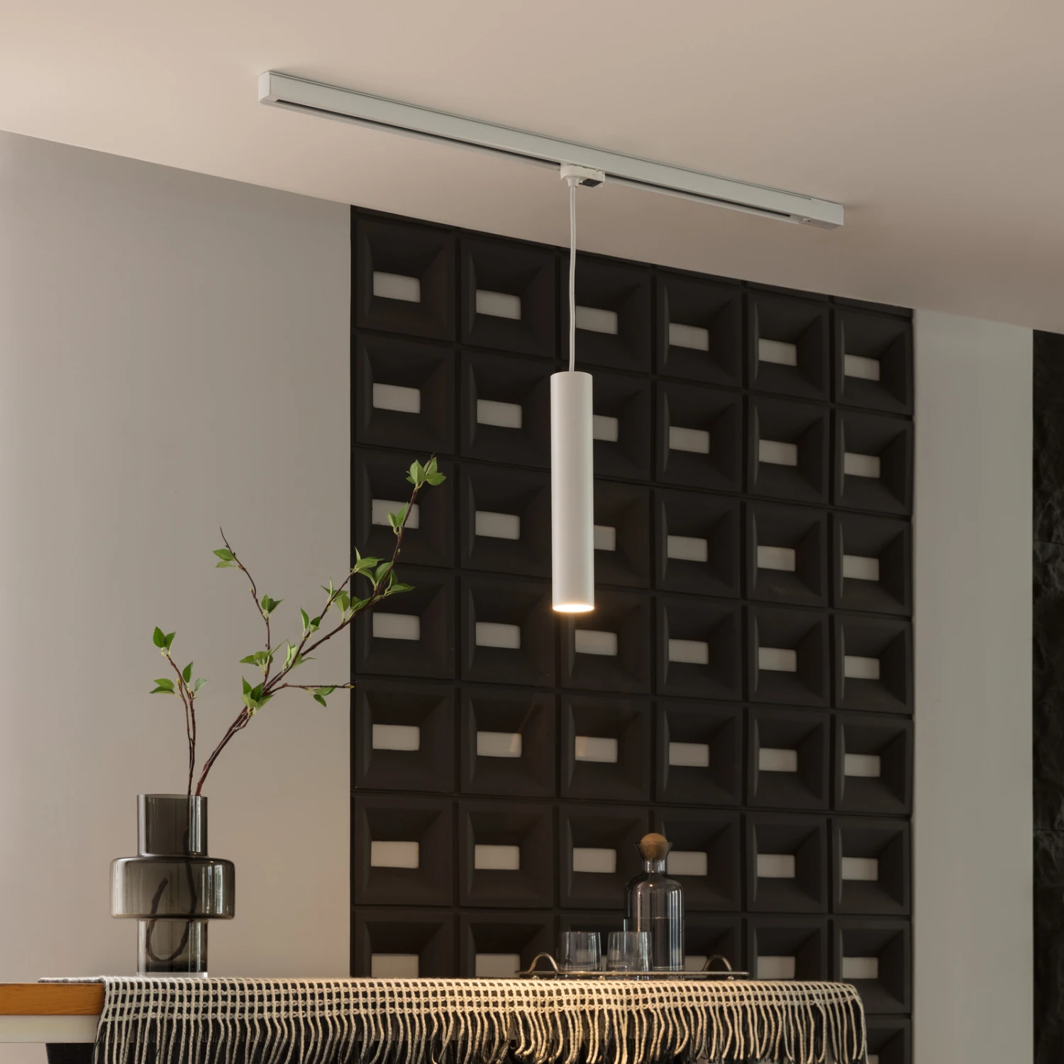 Die Hängeleuchte Ejona ist für den Betrieb mit einem 3-Phasen-Schienensystem konzipiert und verfügt über eine GU10-Fassung, die individuell mit einem passenden Leuchtmittel bestückt werden kann. Hier bieten sich zum Beispiel verschiedene Lichtfarben und Abstrahlwinkel an, so dass dem Gebrauch in privaten Wohnräumen oder in Gewerberäumen kaum Grenzen gesetzt sind und man die passende Beleuchtung kreieren kann. Die weiße Oberfläche des runden Metallschirms in schmaler Form steht für einen harmonischen und zeitlosen Ausdruck und passt zu vielen Umgebungen.