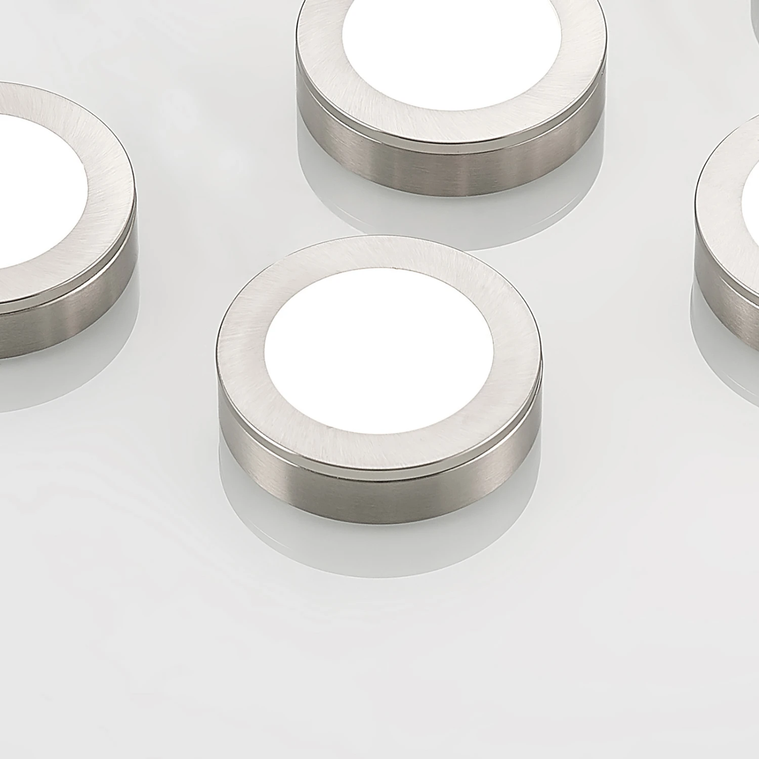 Die LED-Unterbauleuchte Vilam kommt in einem modernen Design daher und punktet mit sparsamer LED-Technik. Ihr Gehäuse wurde aus Aluminium hergestellt und mit einem Oberflächenfinish in Nickel versehen. Die Schirmabdeckung besteht aus Kunststoff und dient als ein Diffusor, sodass das Licht blendfrei abgegeben wird.