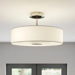 Ein ganz besonders zeitloses Design kennzeichnet die Deckenleuchte Josia, deren weißer Stoff geradezu universal verwendbar ist. An der Unterseite befindet sich ein satinierter Diffusor aus Glas, der eine besonders weiche Verteilung des Lichts bewirkt, so dass es wohnlich und einladend erscheint. Durch die Ausstattung mit insgesamt 3 Leuchmitteln wird eine angemessene Helligkeit erzielt, die nicht nur im Ess- und Wohnzimmer willkommen ist, sondern auch in Flur und Schlafzimmer für das passende Licht sorgt. Auch dort wirken Stoff-Deckenleuchten stets stilvoll und elegant. Nicht nur die Verwendung von klassischen Glüh- oder den etwas energieeffizienteren Halogenlampen ist möglich, ebenso können LEDs und Energiesparleuchtmittel eingesetzt werden.