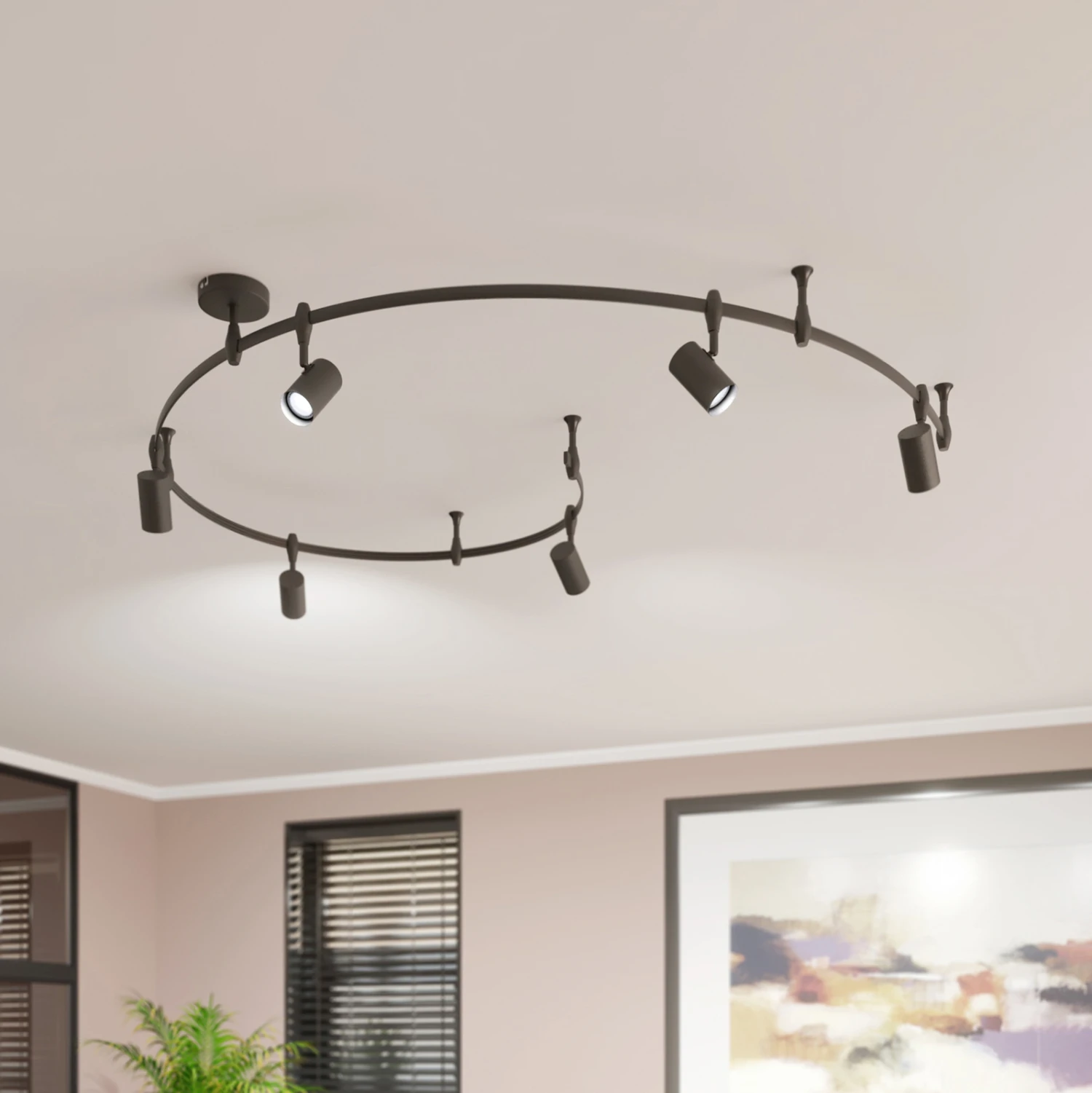 Sandschwarzes 1-Phasen-Schienensystem Delila in modernem Design mit zylinderförmigen Leuchtenschirmen