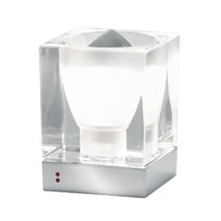 Diese variabel im Innenbereich einsetzbare Tisch- und Bodenleuchte stammt aus der vom Studio Pamio Design erdachten Serie Cubetto. Angesichts der kantigen Gestaltung mit kubischem, transparentem Glasschirm und rechteckigem Fuß aus glänzend verchromtem Metall harmoniert Cubetto insbesondere mit modernen Einrichtungskonzepten. Als Leuchtmittel ist eine LED-Kopfspiegellampe zu empfehlen. Diese kann innerhalb einer nach oben offenen Aussparung eingesetzt werden, in deren Bereich das Glas sandgestrahlt ist. Im Ergebnis sind die Optik und die Lichtwirkung der Fabbian-Leuchte absolut eigenständig und dekorativ.