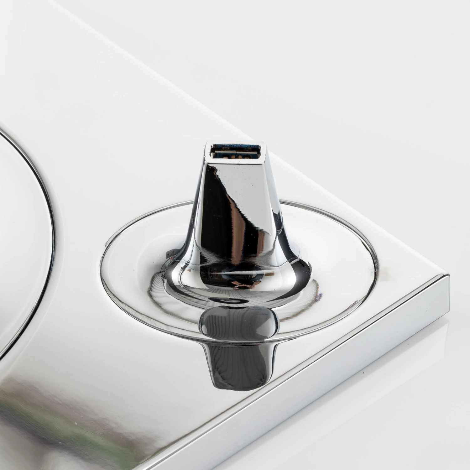 Praktisch, funktional, am Puls der Zeit: mit der Stehleuchte Bibliothèque Nationale hat der Designer Philippe Starck ein exklusives Designobjekt geschaffen, das auf allen Ebenen begeistert. Eigentlich fast klassisch im Design, sind es die Details, die den Charme der Leuchte ausmachen: mehrere Ablagen aus Edelstahl zieren das Gestell und bieten genug Platz um Bücher, Handy oder gar einen Tablet-PC immer griffbereit zu haben. Für letztere befindet sich am Lampenfuß eine USB-Buchse, die als Ladestation für alle gängigen Smartphones (inkl. iPhone 5) dient.