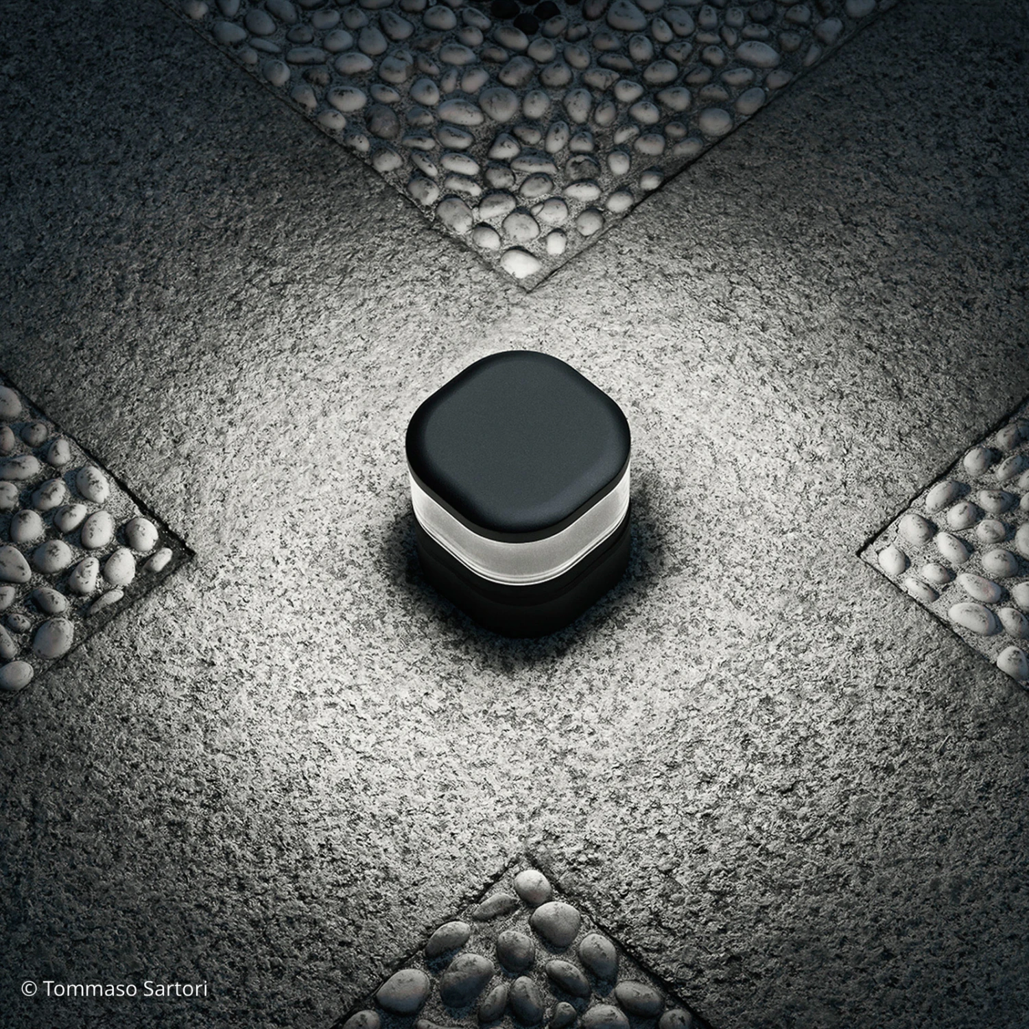 Der größte Teil des Aluminiumkörpers wird im Boden eingelassen und geht bündig in den Bodenbelag über. Darauf sitzt ein Diffusor aus Polycarbonat, der optisch direkt auf der Bodenoberfläche zu sitzen scheint. Er ist transparent und verfügt über eine kratzfeste Oberfläche, außerdem ist das Polycarbonat UV-stabilisiert. Dies sind viele Faktoren, die in Kombination mit der doppelten Pulverbeschichtung des Aluminiumkopfes zu einer hohen Beständigkeit gegen Korrosion und sämtliche Witterungseinflüsse beiträgt. Daher eignet sich Pointbreak Balisage ideal zur dezenten Beleuchtung im Außenbereich, wo sie dank kompakter Form und einzigartigen Designs eine hochwertige Lichtlösung darstellt, mit der Laufwege und Außenanlagen sicher beleuchtet werden können.