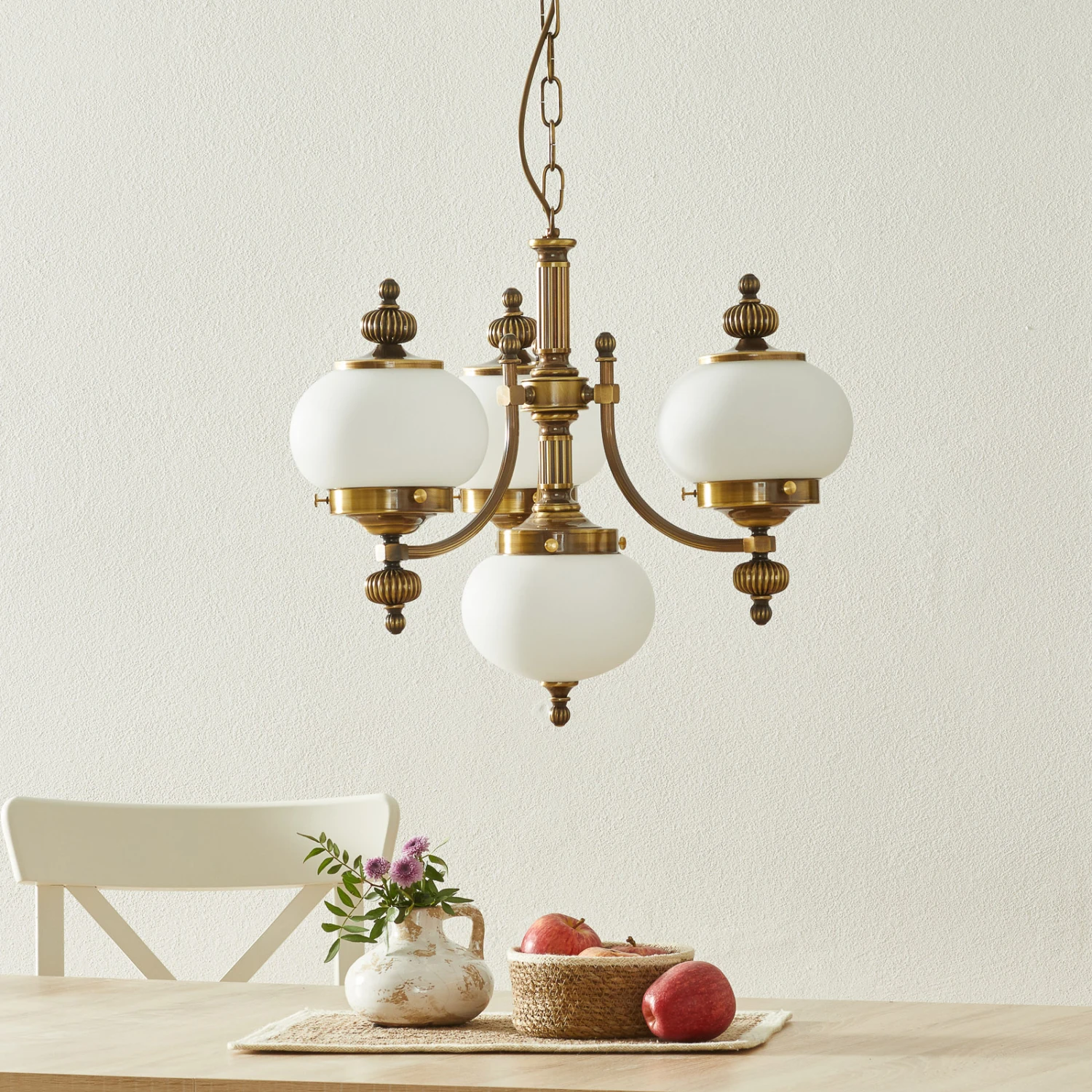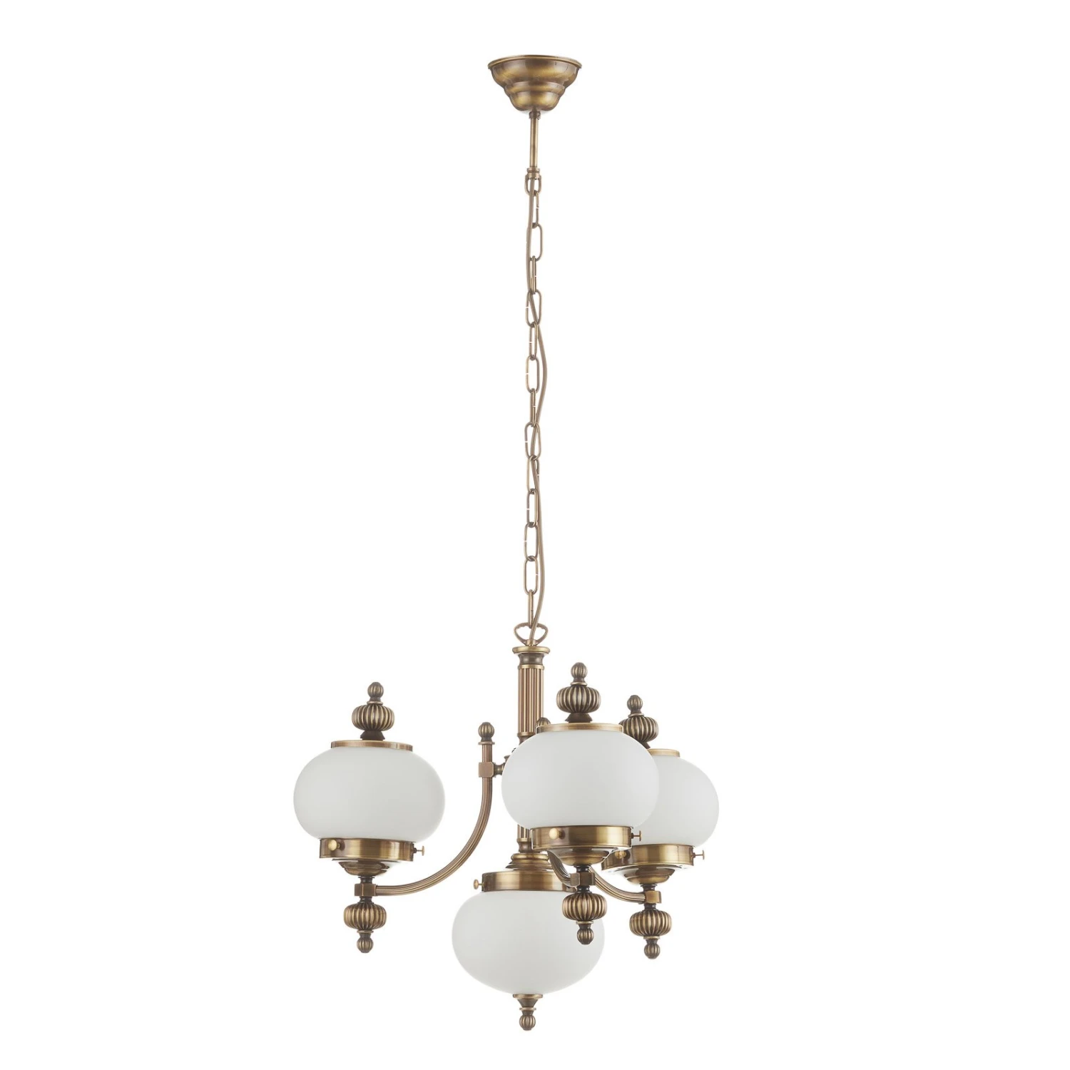 Eindrucksvoller Kronleuchter Delia mit vierflammiger Opalglas-Beleuchtung