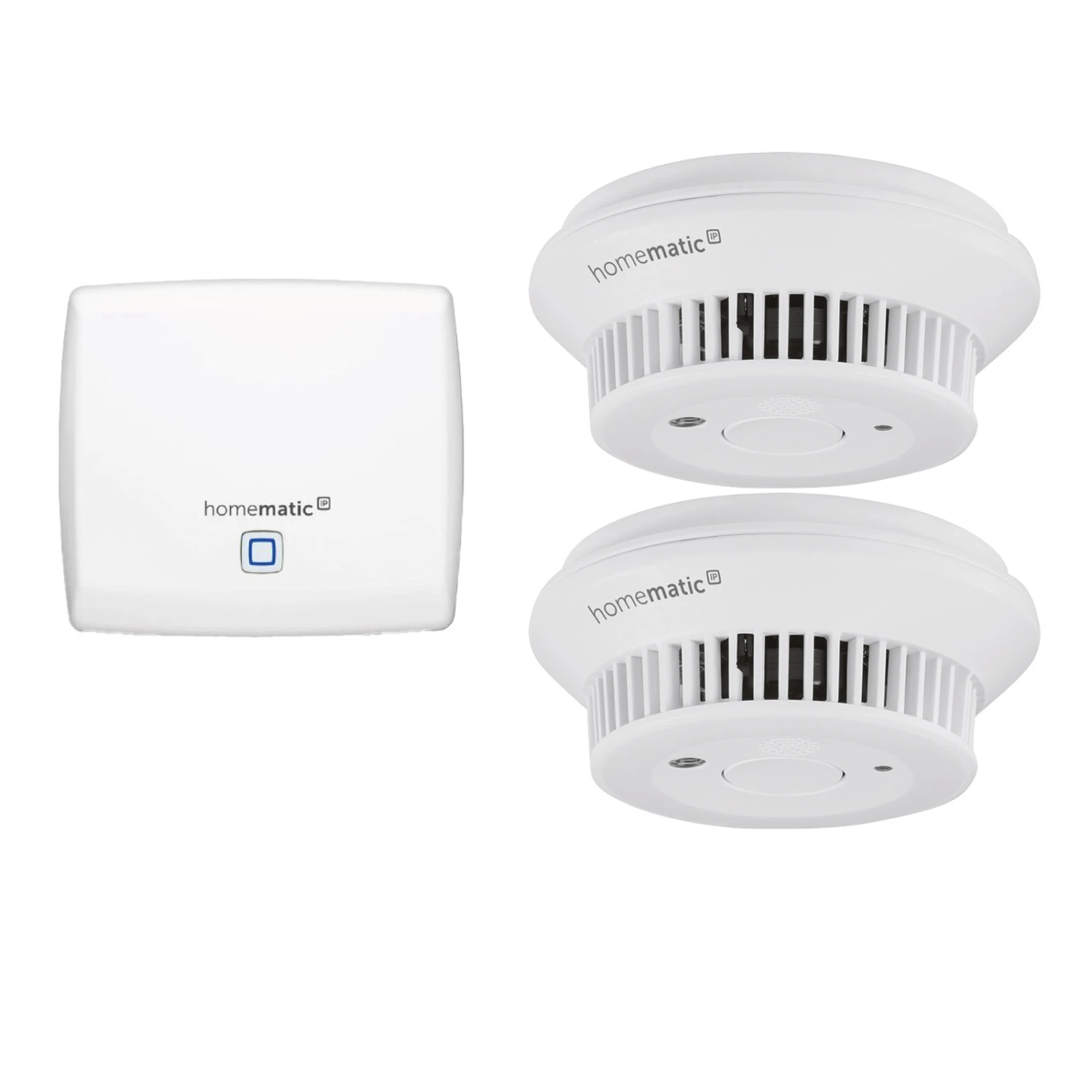 Dieses Starter Set aus dem Homematic IP Smart-Home-Programm besteht aus zwei Rauchwarnmeldern und einem passenden Access Point zur Steuerung.