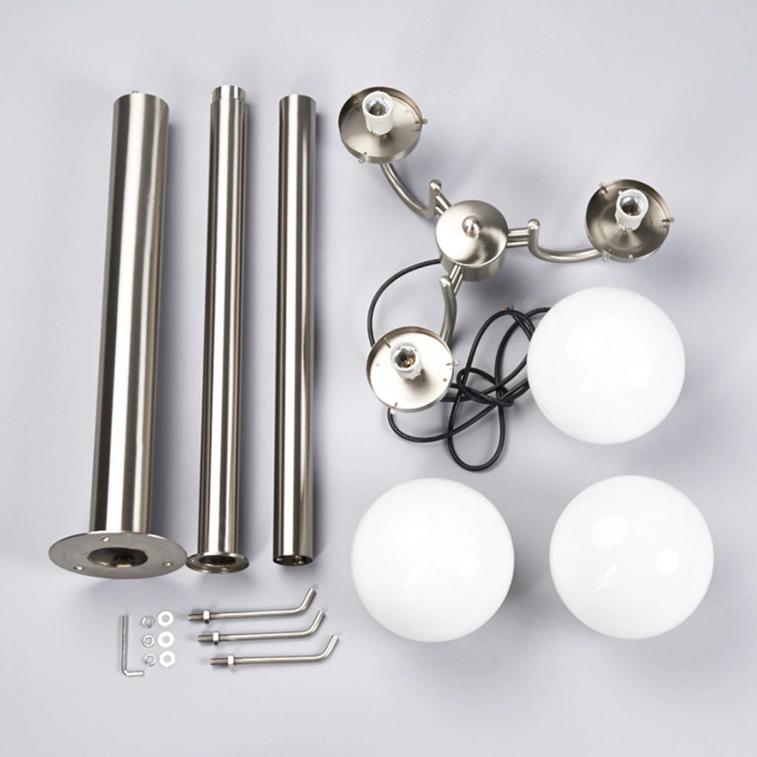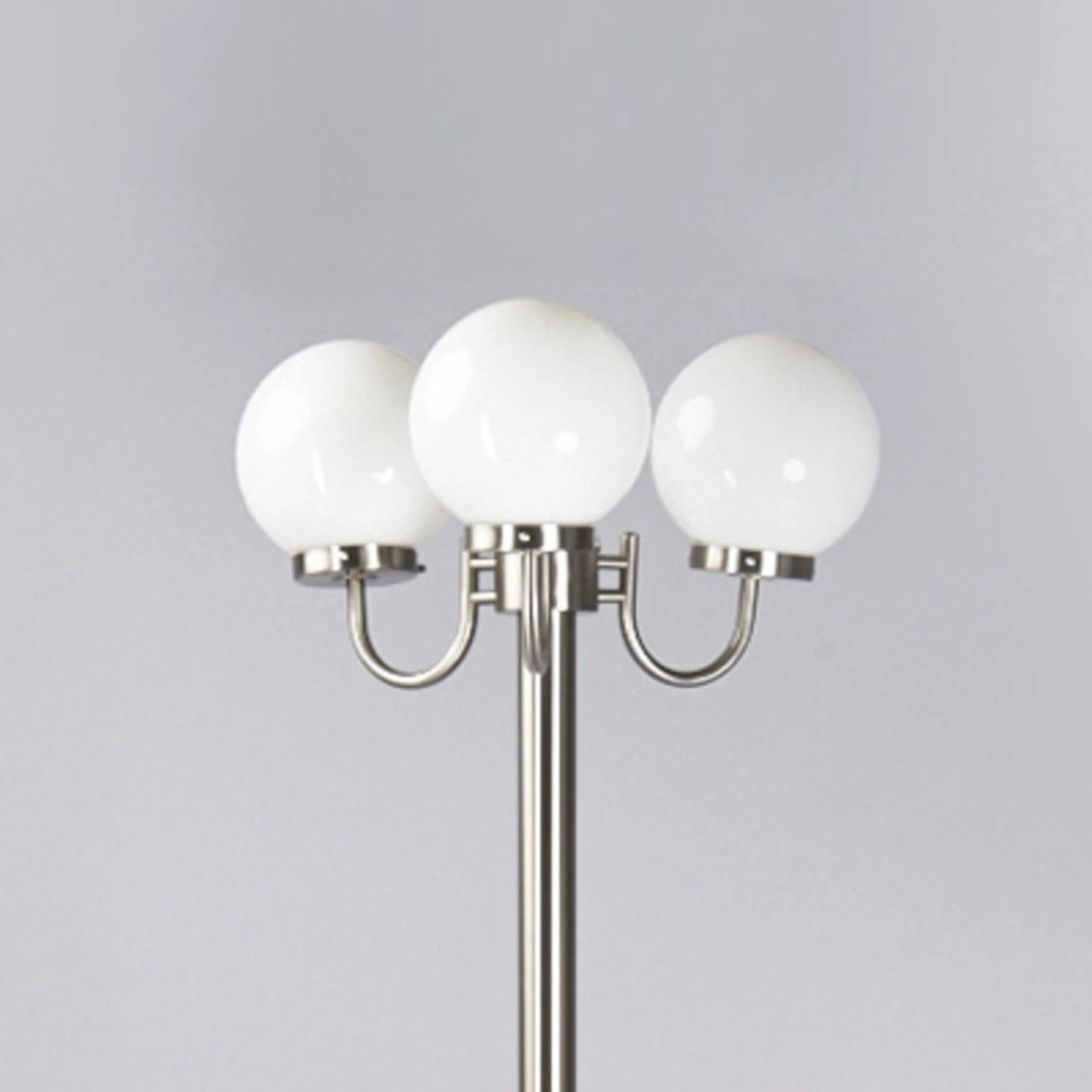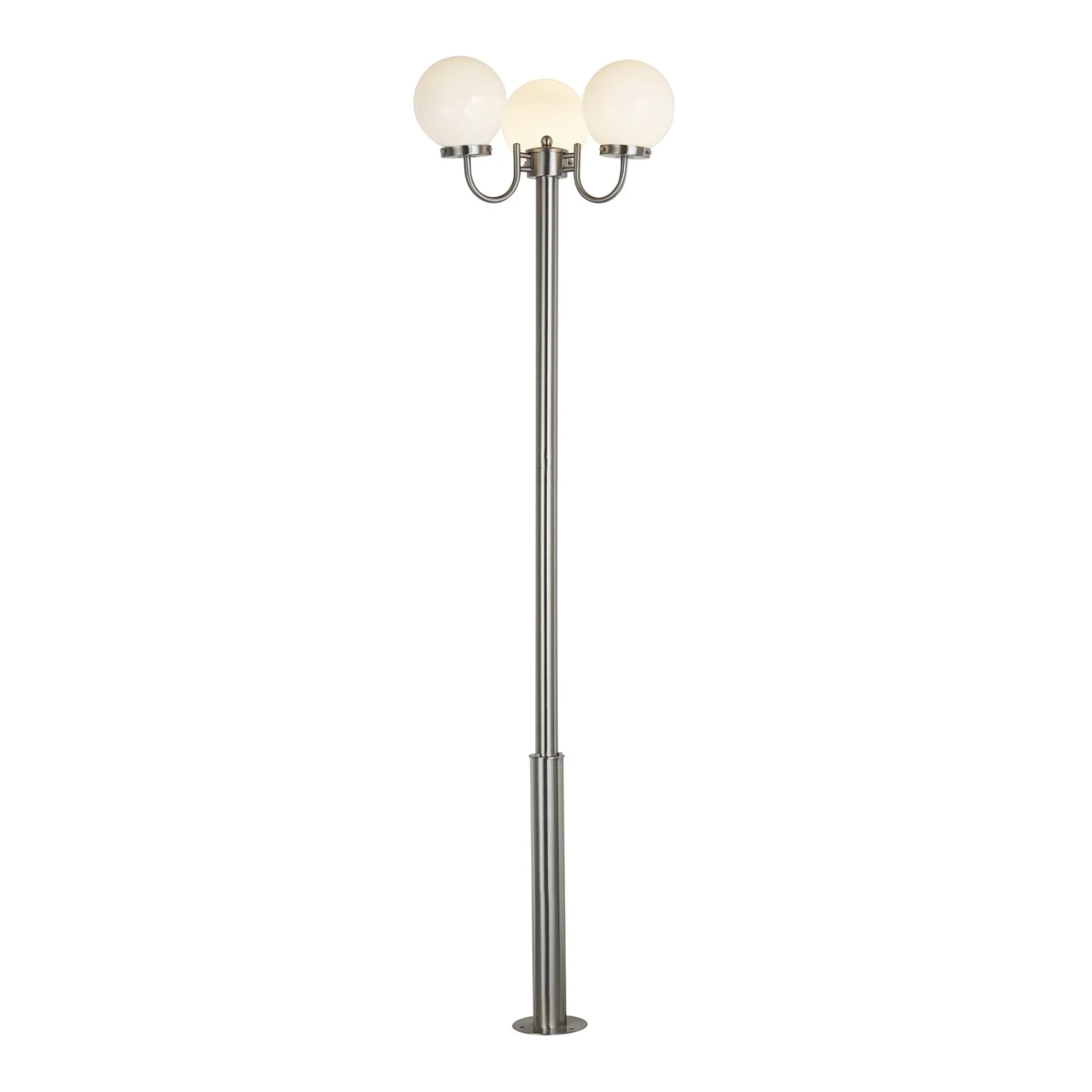Das Gestell ist bei diesem Kandelaber aus hochwertigem Edelstahl gefertigt und es wird im oberen Teil ergänzt von drei Glaskugeln mit opalweißer Oberfläche, die an geschwungenen Armen vom Gestell weggehen. So vereinen sich hier romantische und moderne Gestaltungselement, weshalb Samuel als Kandelaber recht vielseitig zum Einsatz kommen kann, wobei die klassischen Einsatzorte von mehrflammigen Außenleuchten sicherlich Hofeinfahrten von größeren Gebäudekomplexen sowie Parkanlagen sind.