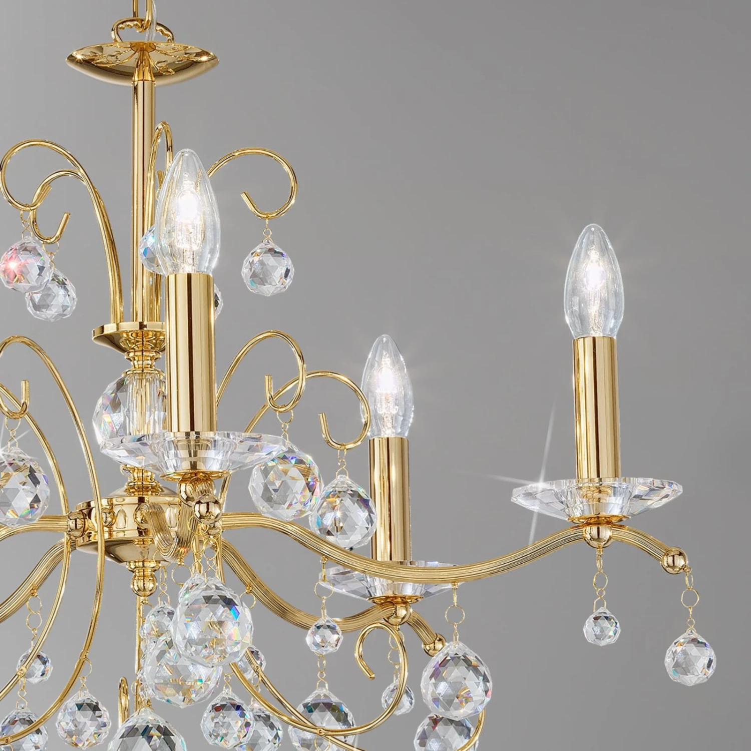 Der bezaubernde Kronleuchter Carmen II mit hochwertigen Kristallen ist ein Meisterwerk traditioneller Handwerkskunst und ein mit 24 Karat vergoldetes, glänzendes Lichtobjekt für den Wohnbereich.