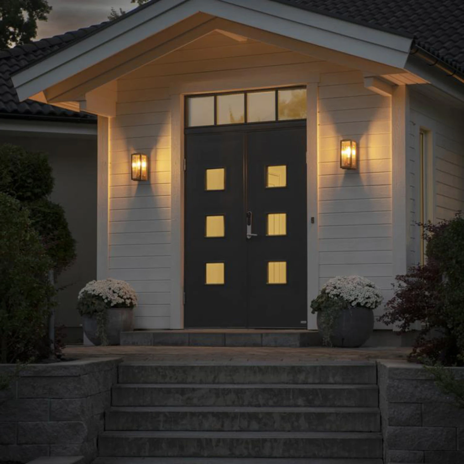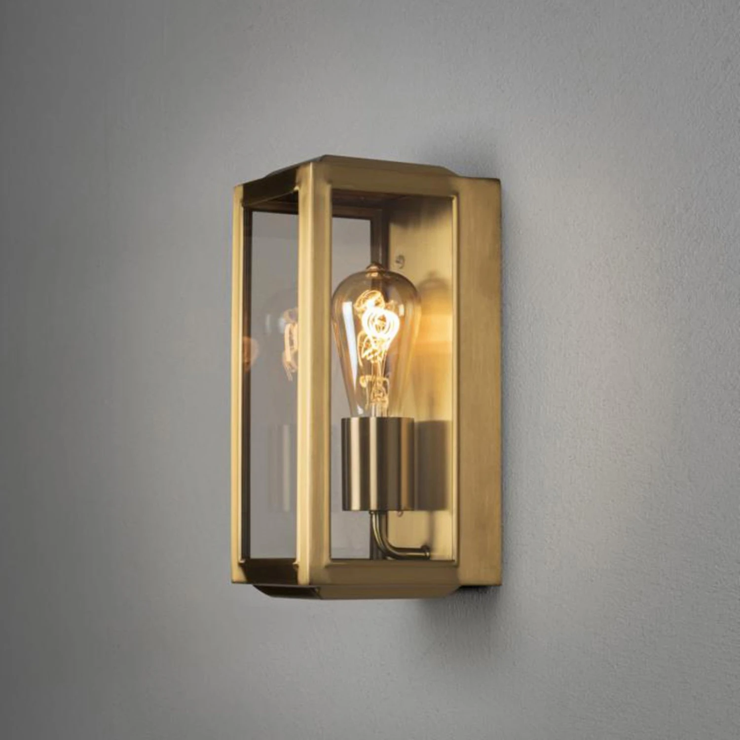 Die Außenwandleuchte Carpi überzeugt mit einem gradlinigen Design. Der Rahmen dieser Leuchte ist aus hochwertigem Aluminium gefertigt und mit einem Finish in Messing versehen worden. Zwischen dem Rahmen befinden sich klare Glasscheiben, die eine direkte Sicht auf das Leuchtmittel ermöglichen. Die Verwendung von Filament-Leuchtmitteln in Kolbenform geben der Leuchte einen außergewöhnlichen Charakter.