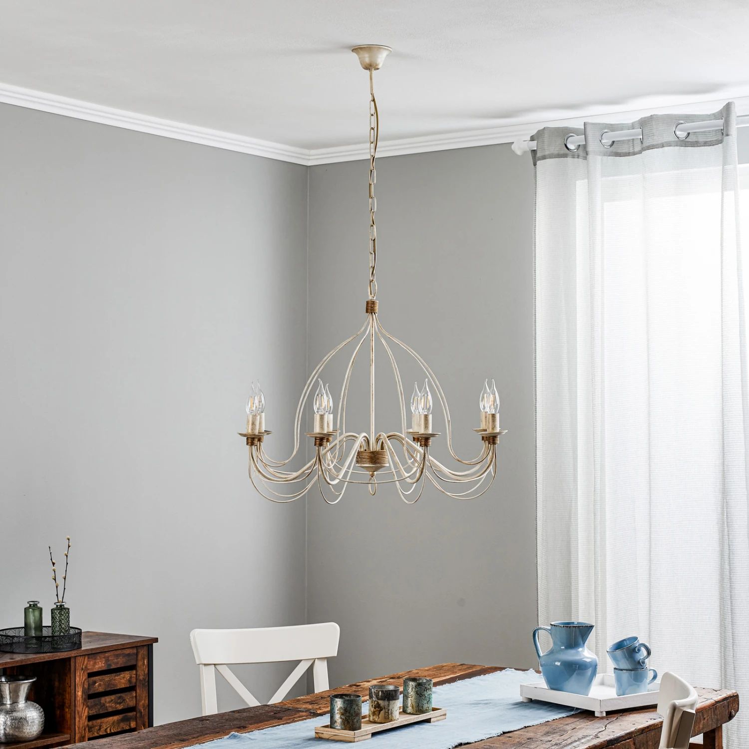8-flammiger Kronleuchter im Landhaus-Design