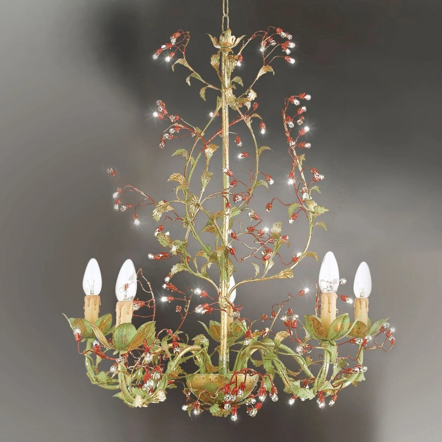 Fünfflammiger Kronleuchter Viticcio mit Pflanzenornamenten