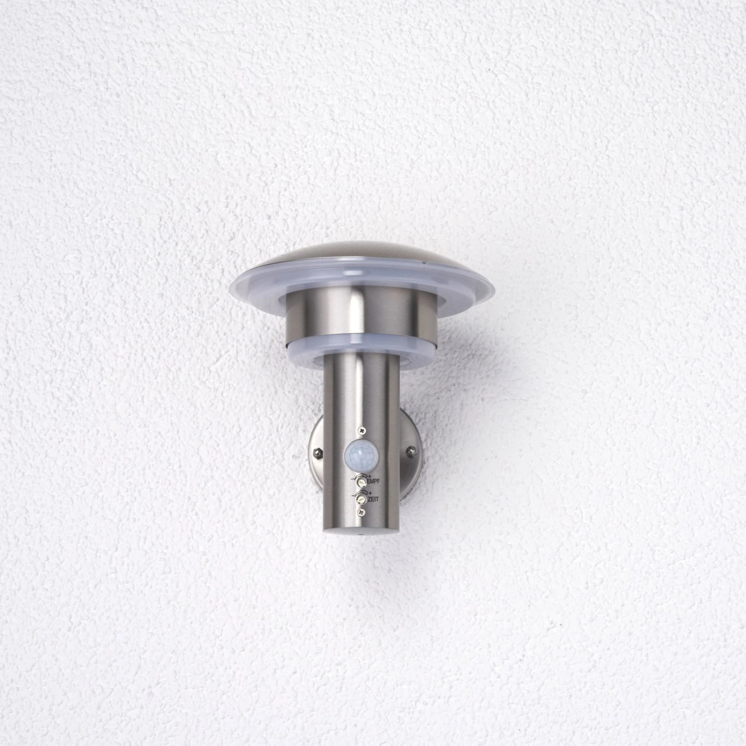 Inklusive Präsenzmelder wird diese LED-Außenwandleuchte ausgeliefert, was natürlich den Komfort für den Verbraucher erhöht. So muss man nicht mehr lange nach einem Schalter suchen, der sich womöglich im Inneren des Hauses befindet, sondern kann sich darauf verlassen, dass der Präsenzmelder zuverlässig auf das Erscheinen von Personen mit einem Einschalten der Außenwandleuchte reagiert. Folgende Änderungen am Präsenzmelder können vorgenommen werden: Die Leuchtdauer lässt sich einstellen (5s-4min) und auch die Reichweite kann variiert werden (2-8m). Der Erfassungswinkel beträgt 90 Grad.