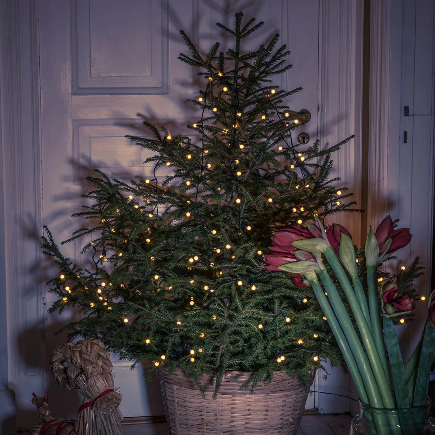 Für den Innenbereich: LED-Baummantel mit Globe-Lampen
