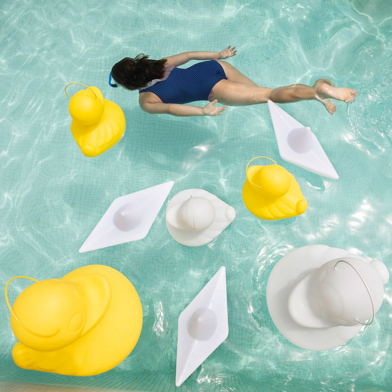 Ob private oder gewerbliche Außenbereiche, die moderne Dekorationsleuchte DUCK-DUCK S bringt kreatives Design in jeden Garten. Die Form begeistert Erwachsene wie Kinder gleichermaßen, erinnert die Leuchte doch an die klassische Badeente, die bei keinem Wannenbad fehlen darf. DUCK-DUCK S ist nun die Ente für den Außenpool: Sie ist schwimmfähig, stoß- und bruchfest sowie UV-resistent und kann somit bedenkenlos unter freiem Himmel eingesetzt werden.