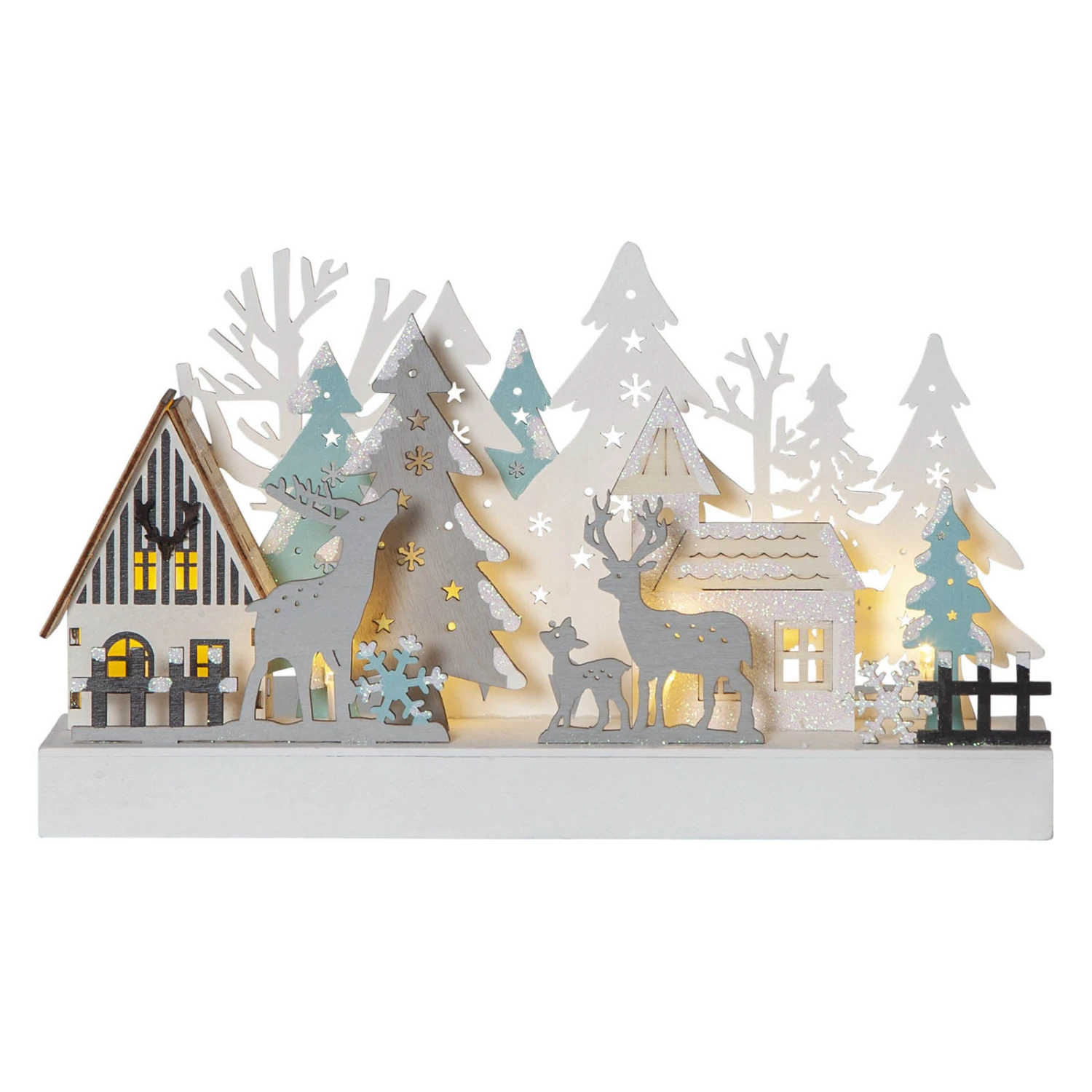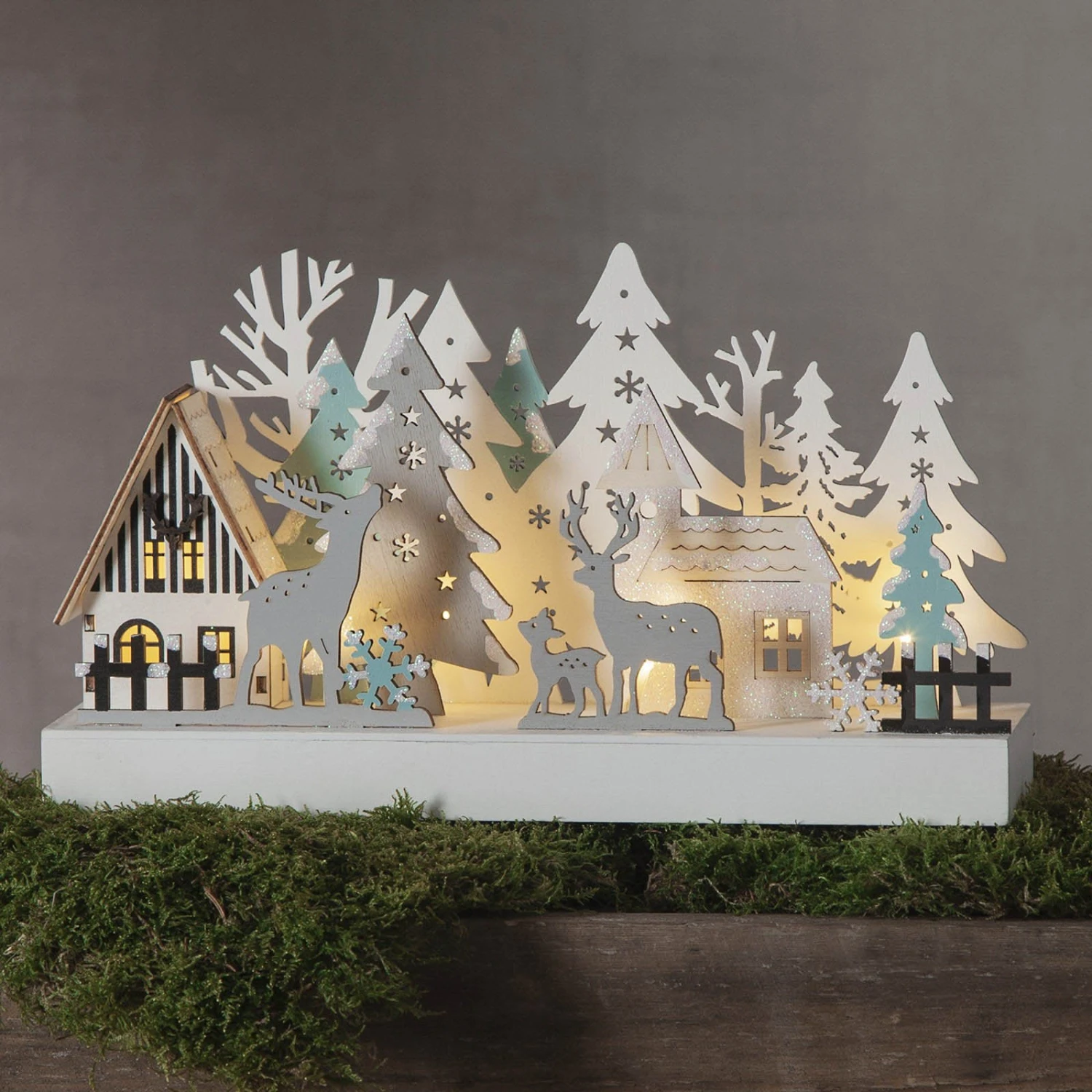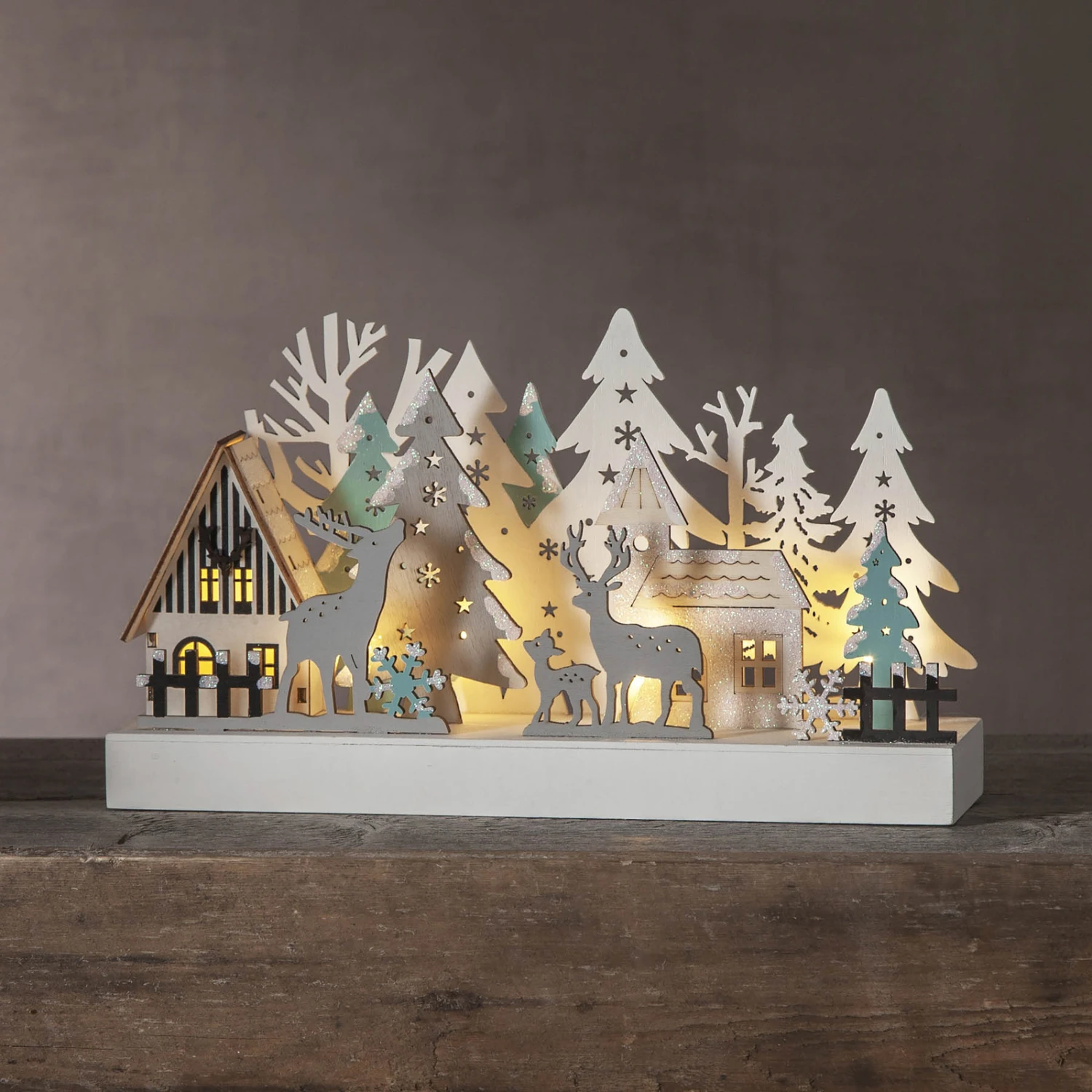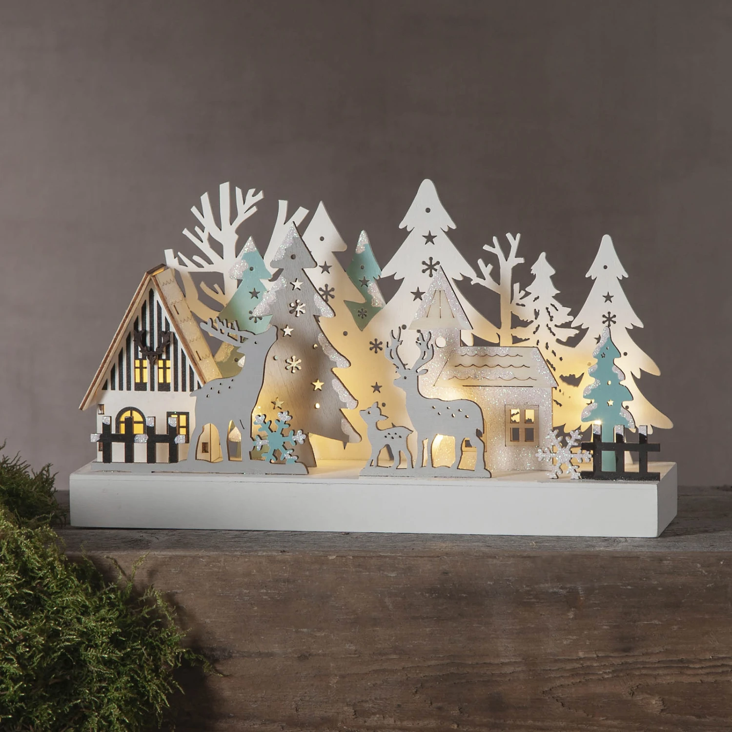 Unbeleuchtet ist der LED-Fensterleuchter Reinbek schon ein echter Blickfang: Die einzelnen Motive der Waldszene sind sehr plastisch aus dem Holz herausgearbeitet. Besonders eindrucksvoll wirkt die Szenerie, sobald die Beleuchtung eingeschaltet wird und warmweiße LEDs ihr sanftes Licht abstrahlen. Ein wundervoller Weihnachtsschmuck, z. B. für die Fensterbank.
