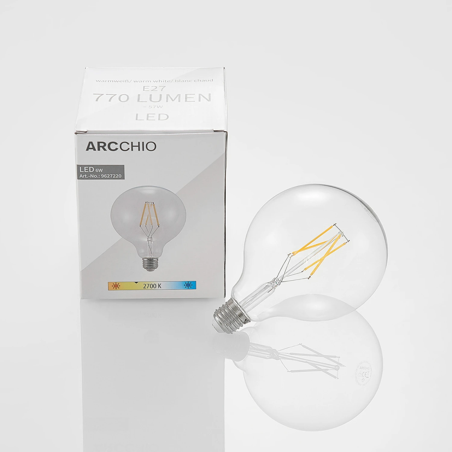 Diese LED-Lampe ist leuchtstark und zugleich sparsam im Stromverbrauch. Sie lässt sich über einen herkömmlichen Wanddimmer in ihrer Helligkeit verstellen, wobei ihre Maximalleistung die der altbekannten Glühlampe mit einer Leistung von 57 W entspricht.