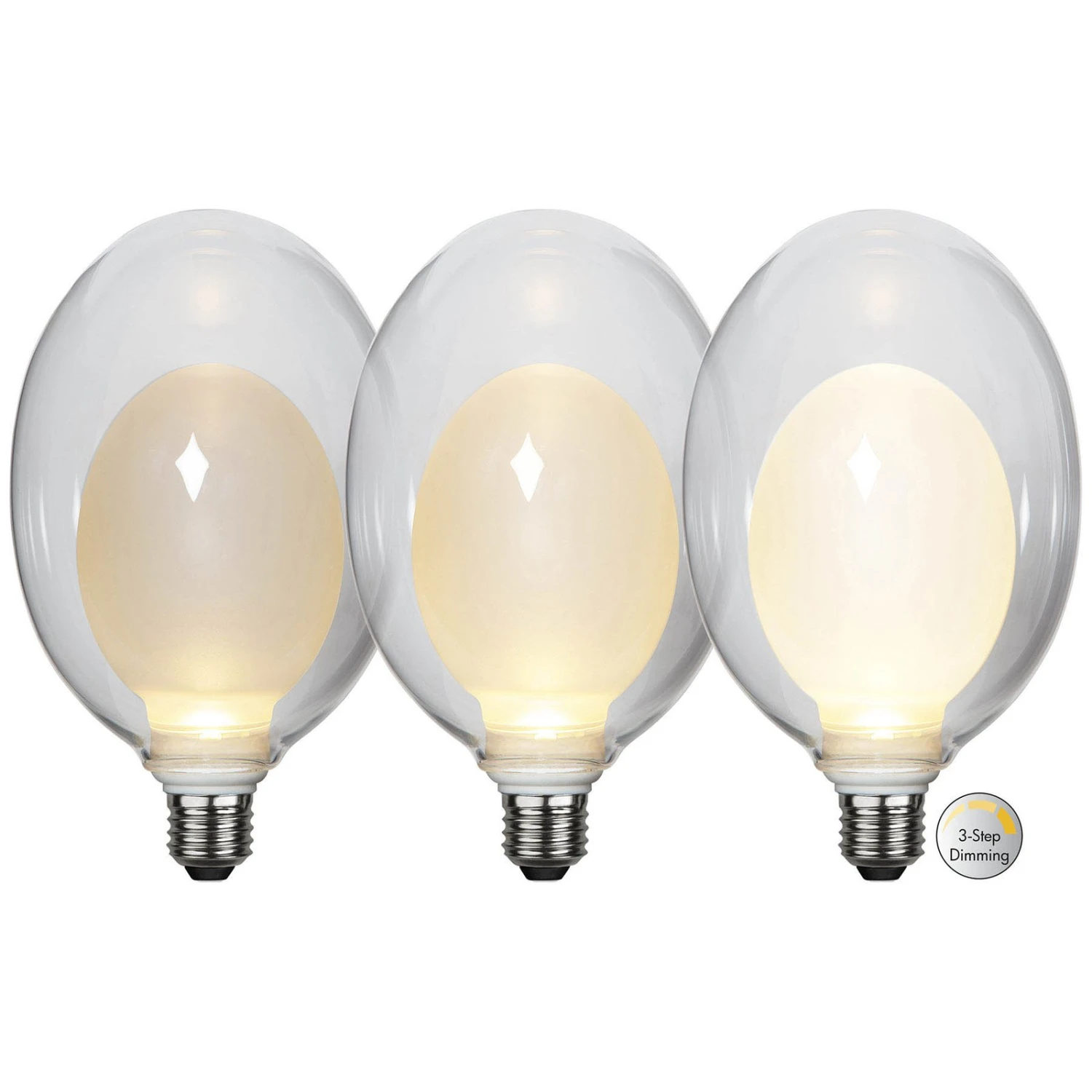Dank der 3-Step Dim-Funktion lässt sich die LED-Lampe Space ganz einfach über das Bedienen des herkömmlichen Wandschalters in drei Stufen dimmen. Der Lichtoutput ändert sich von 55, über 190 bis zu 350 Lumen.