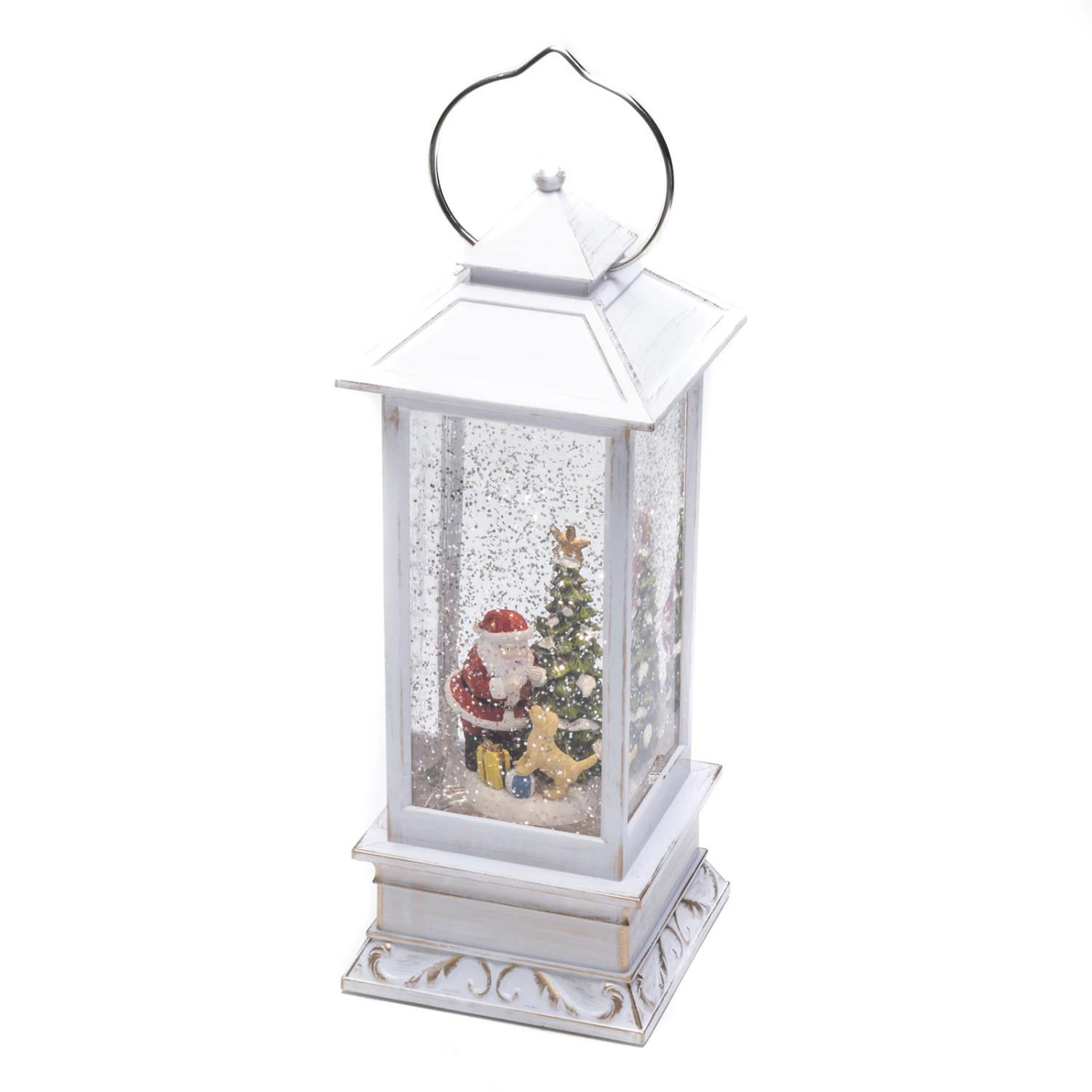 Ästhetisch gestaltete LED-Wasserlaterne Weihnachtsmann mit Hund