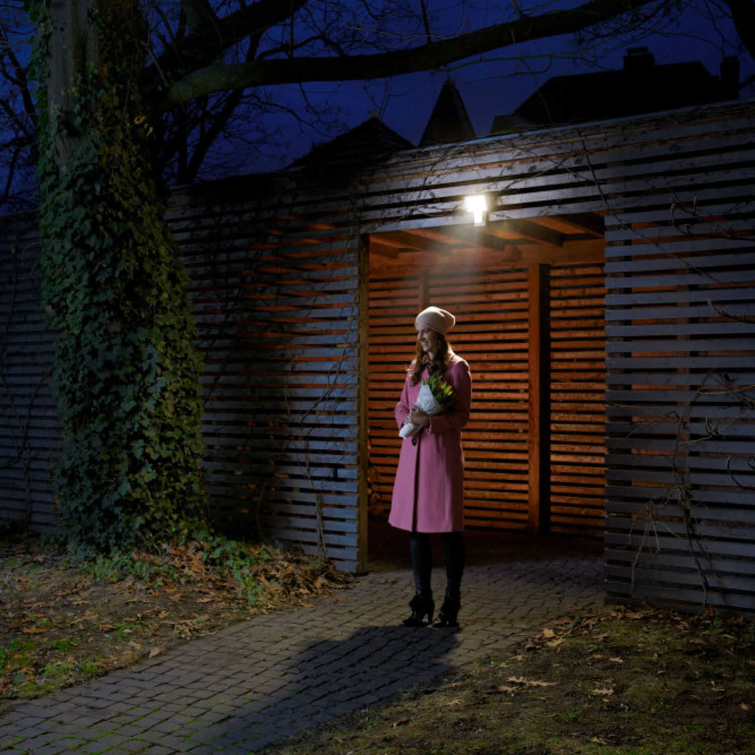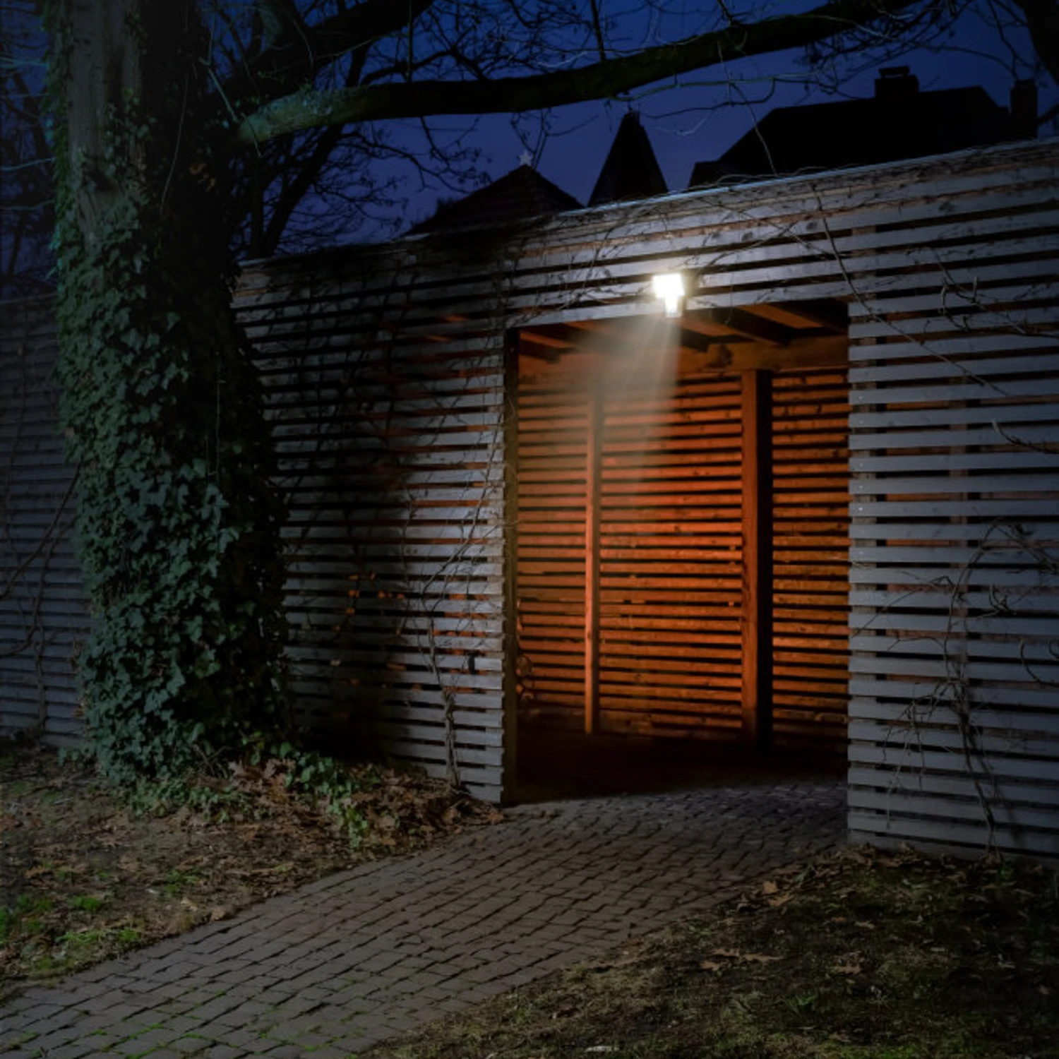 Mit dem LED-Außenwandstrahler Endura Pro Flood lassen sich mühelos Außenbereiche wie Einfahrten, Eingänge und Arkaden beleuchten, wenn bereits die Dunkelheit eingesetzt hat. Sobald der Sensor eine Bewegung registriert, wird die fokussierte Außenfläche mit einem Ausstrahlungswinkel von 100° gleichmäßig mit hellem, universalweißem Licht erhellt. Ein schwenkbarer und verstellbarer Leuchtenkopf ermöglicht zudem eine bedarfsgerechte Beleuchtung. Das Gehäuse besteht aus Polycarbonat und ist besonders robust verarbeitet. Der Stoßfestigkeitsgrad von IK05 garantiert, dass weder Schläge mit der Hand noch mit der Faust den Strahler beschädigen können. Durch die Schutzklasse IP55 ist er zudem witterungsbeständig, so dass weder Schmutz noch starker Regen der Leuchte etwas anhaben können.