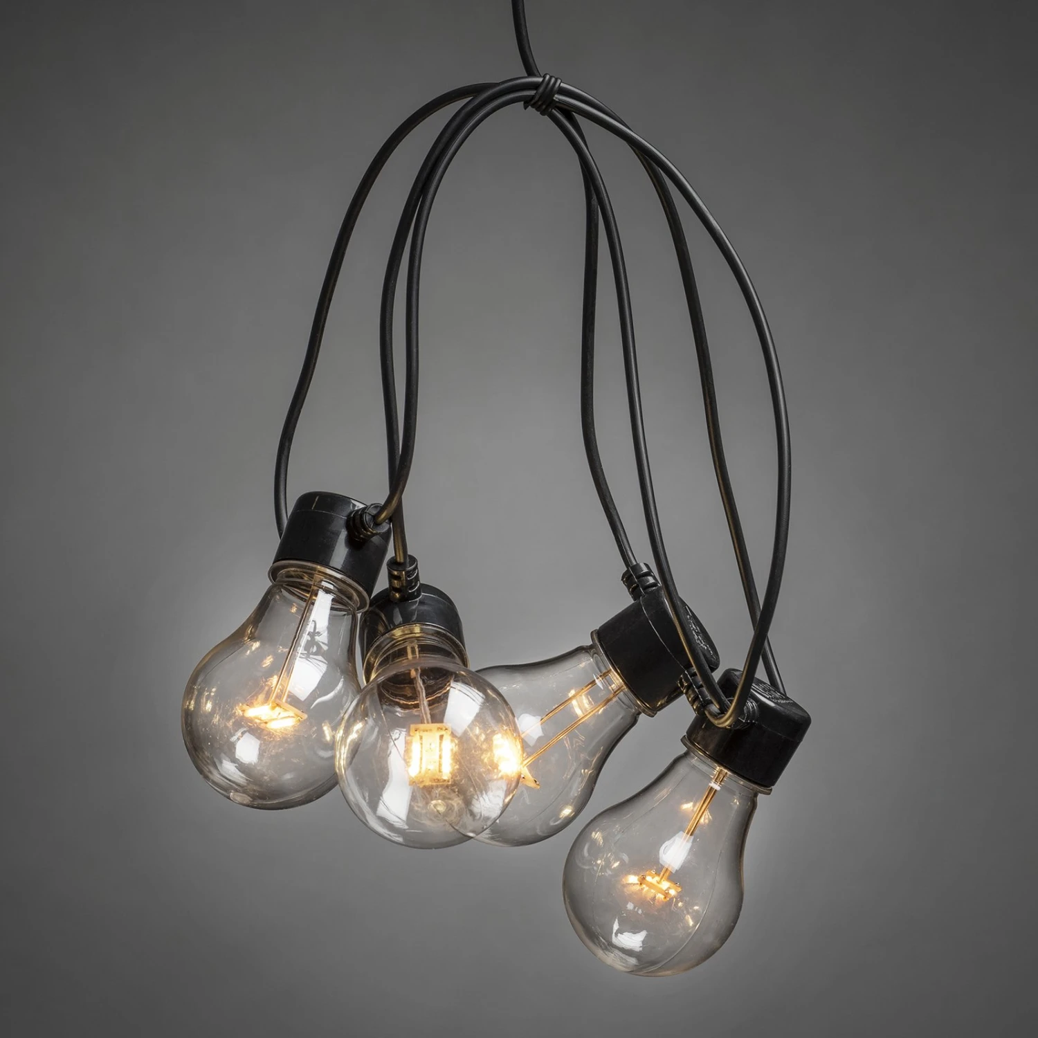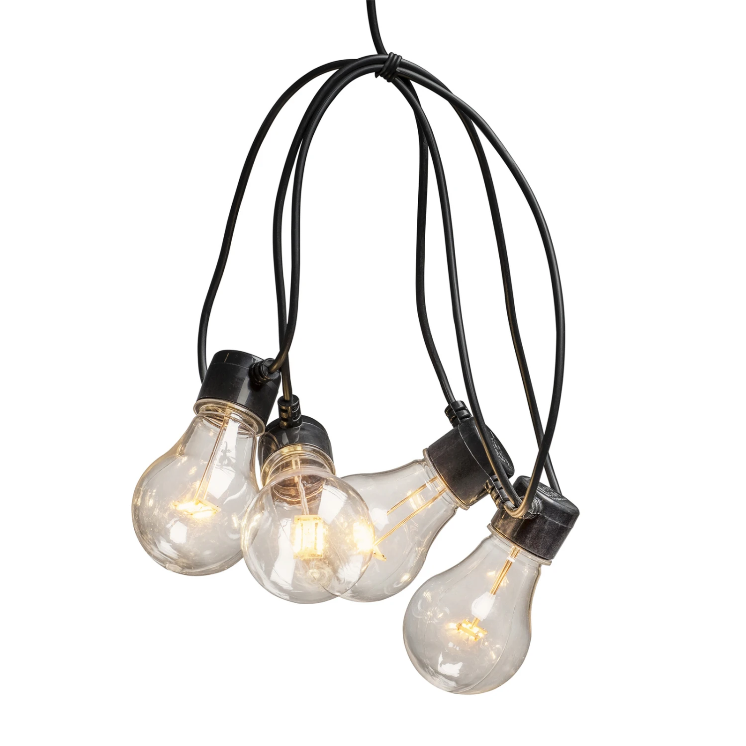 Diese Lichterkette mit 20 klaren Birnen verleiht jeder festlichen Aktivität im Außenbereich den richtigen Rahmen. Dafür sorgt das angenehme Licht der in der Lichtfarbe Bernstein leuchtenden LEDs. Die ideale Partybeleuchtung: Sie kann z. B. einfach zwischen den Bäumen oder an der Pergola aufgehängt werden. Doch egal, wo sie letztendlich platziert wird, die LED-Lichterkette Biergarten fasziniert durch die fantastische Lichtstimmung, die sie erzeugt.