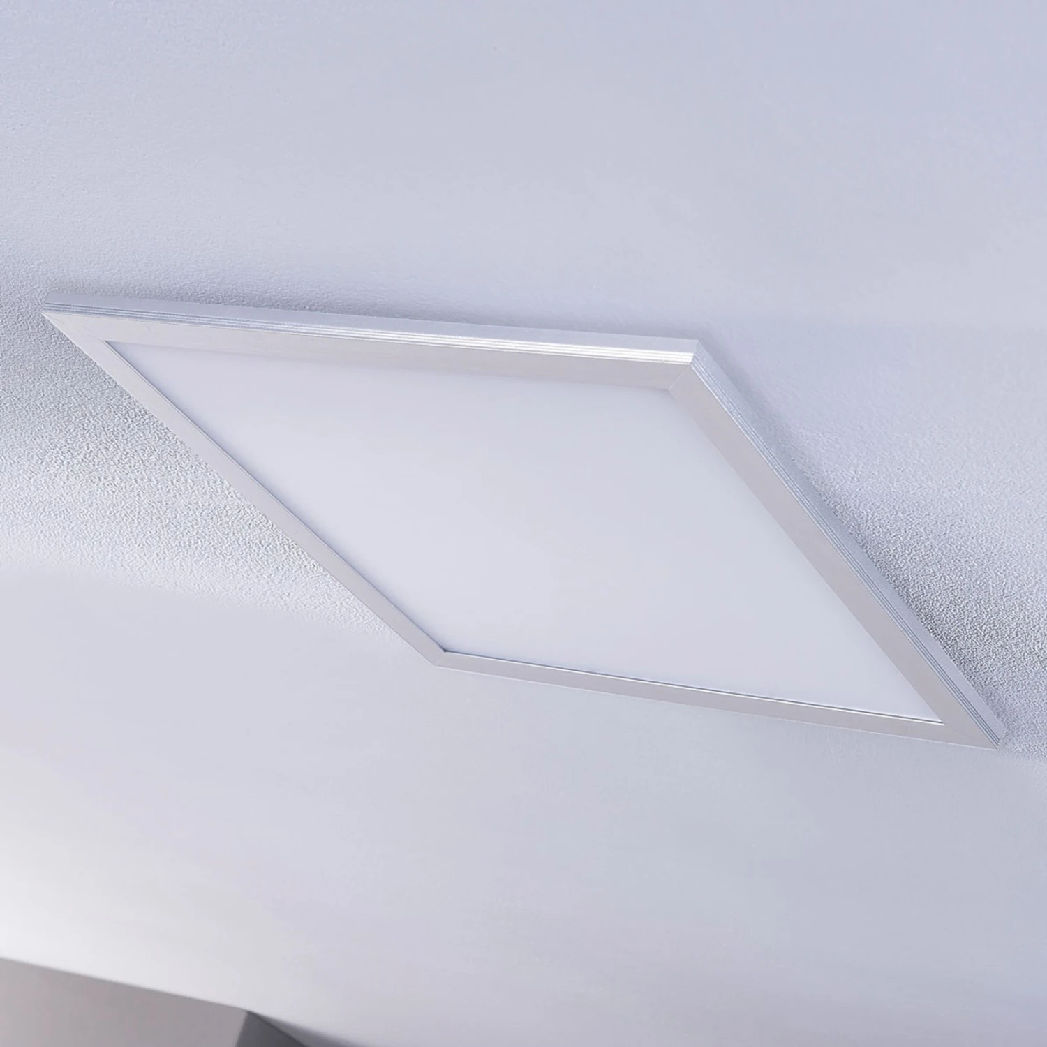Livel ist ein besonders funktionales Beleuchtungselement, das eine quadratische Grundform mit einem Seitenmaß von 62 cm hat. Die Diffusorfläche aus PMMA wird gerahmt von einer Aluminiumeinfassung mit silberner Lackierung. Livel muss nicht ausschließlich an der Decke montiert werden, sondern kann auch in eine Rasterdecke eingelegt werden. Besonders geeignet ist die LED-Deckenlampe für die Verwendung in Büros und Arbeitszimmern, sie leistet aber auch in einer Küche oder dem Flur gute Dienste