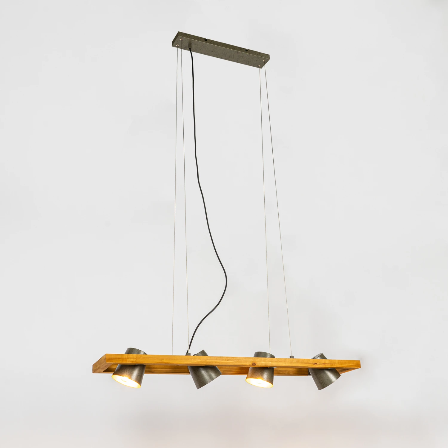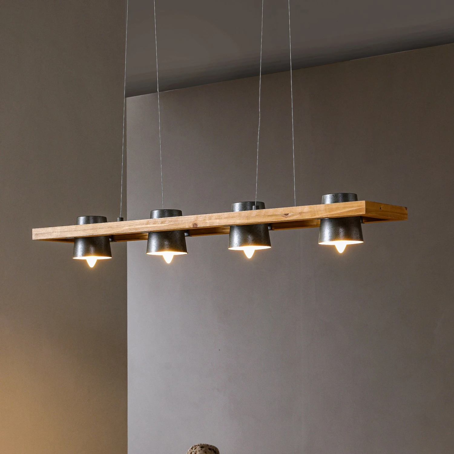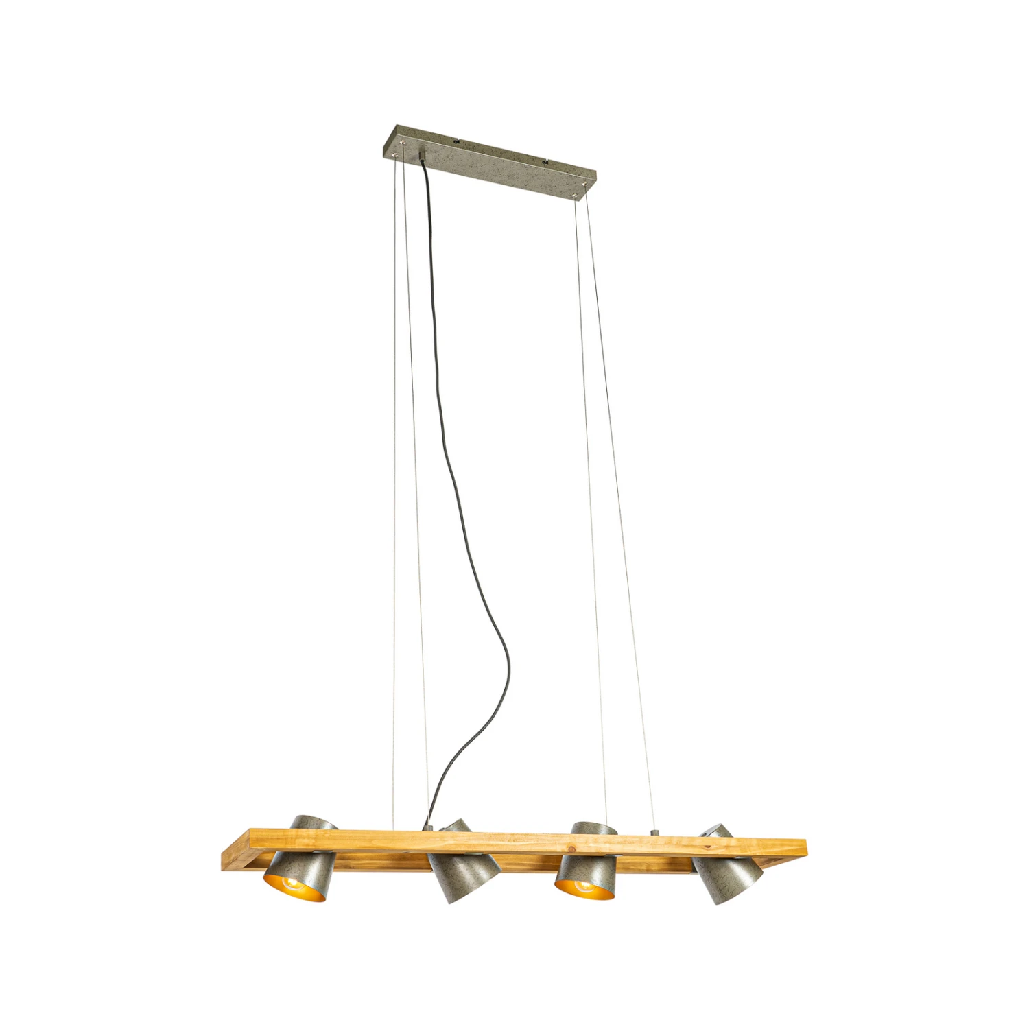 Vierflammige Pendelleuchte Thimea aus Metall und Holz