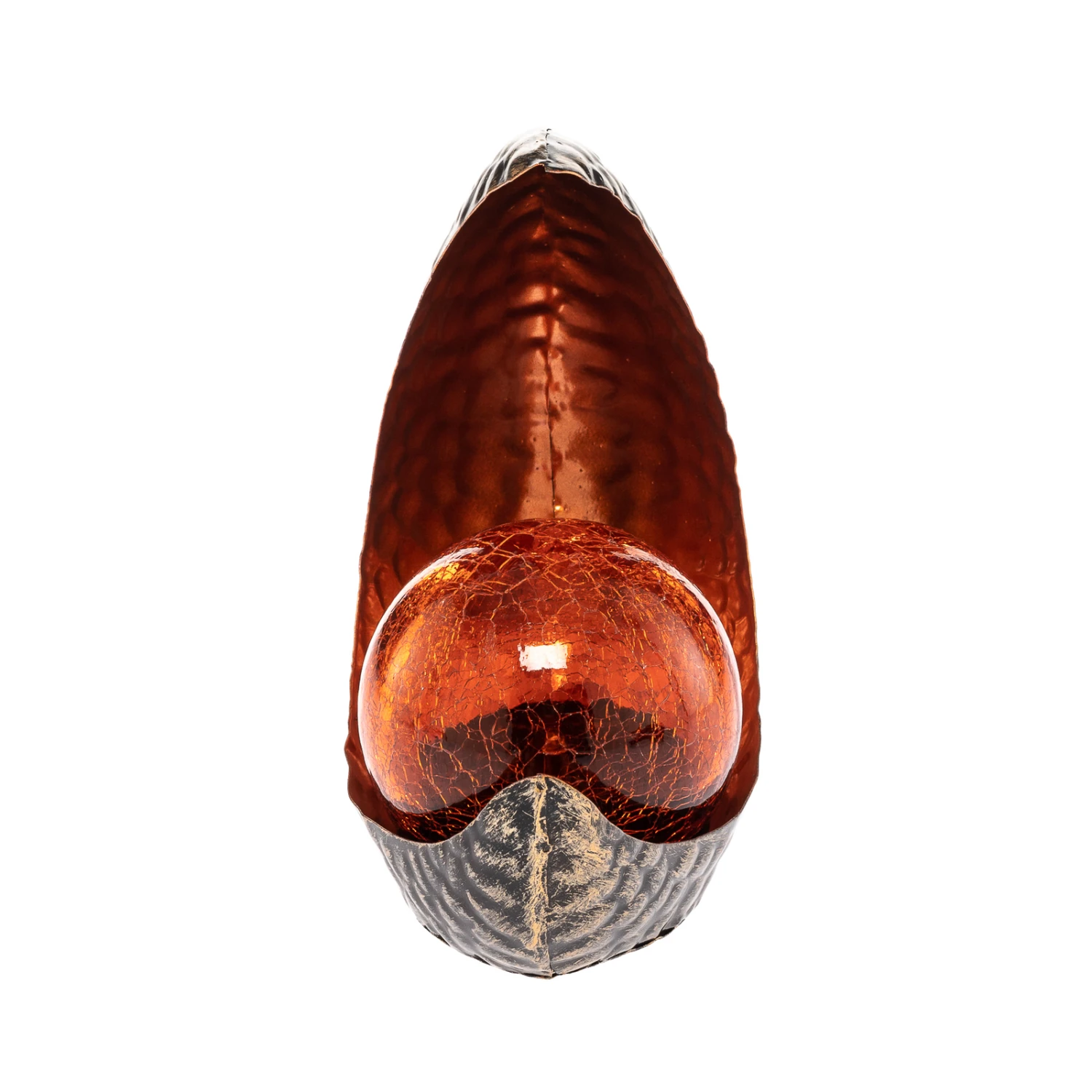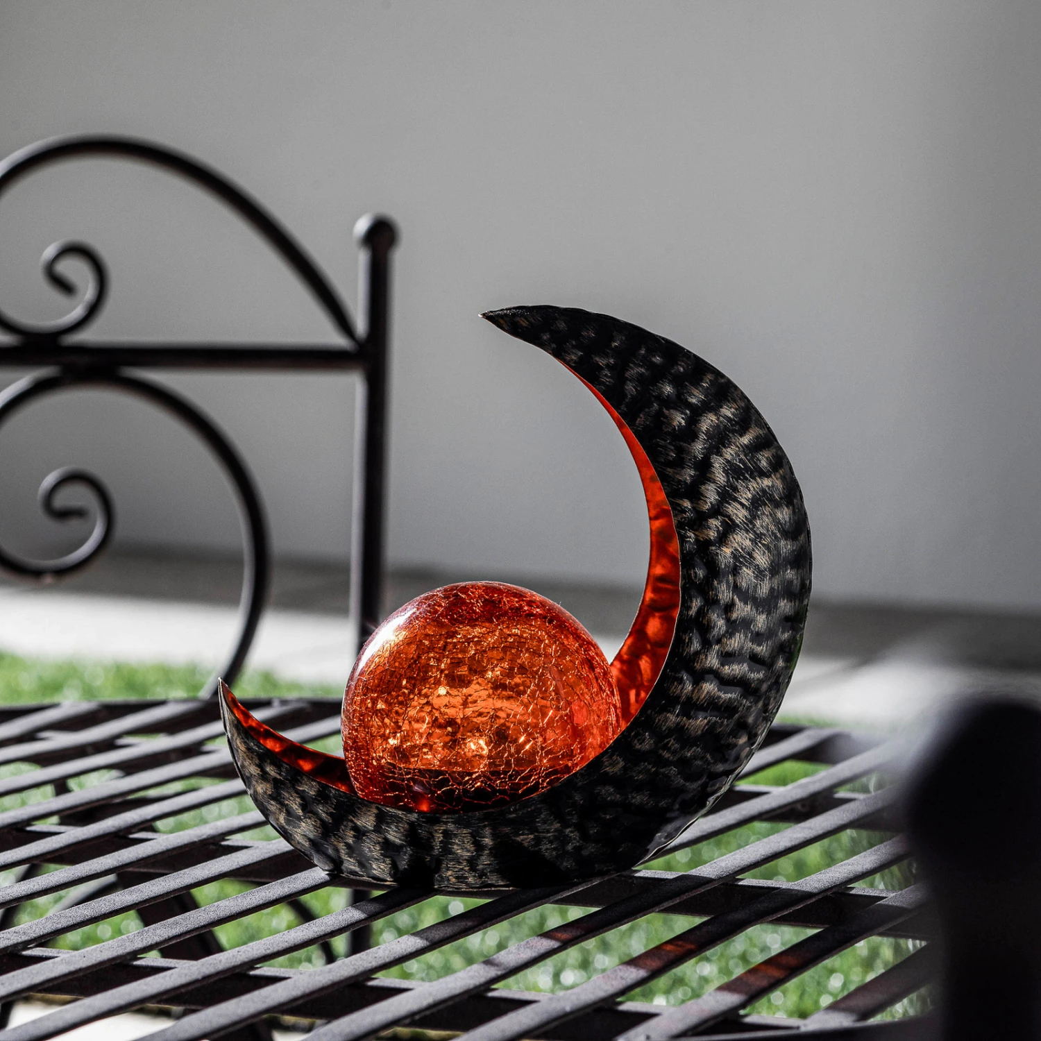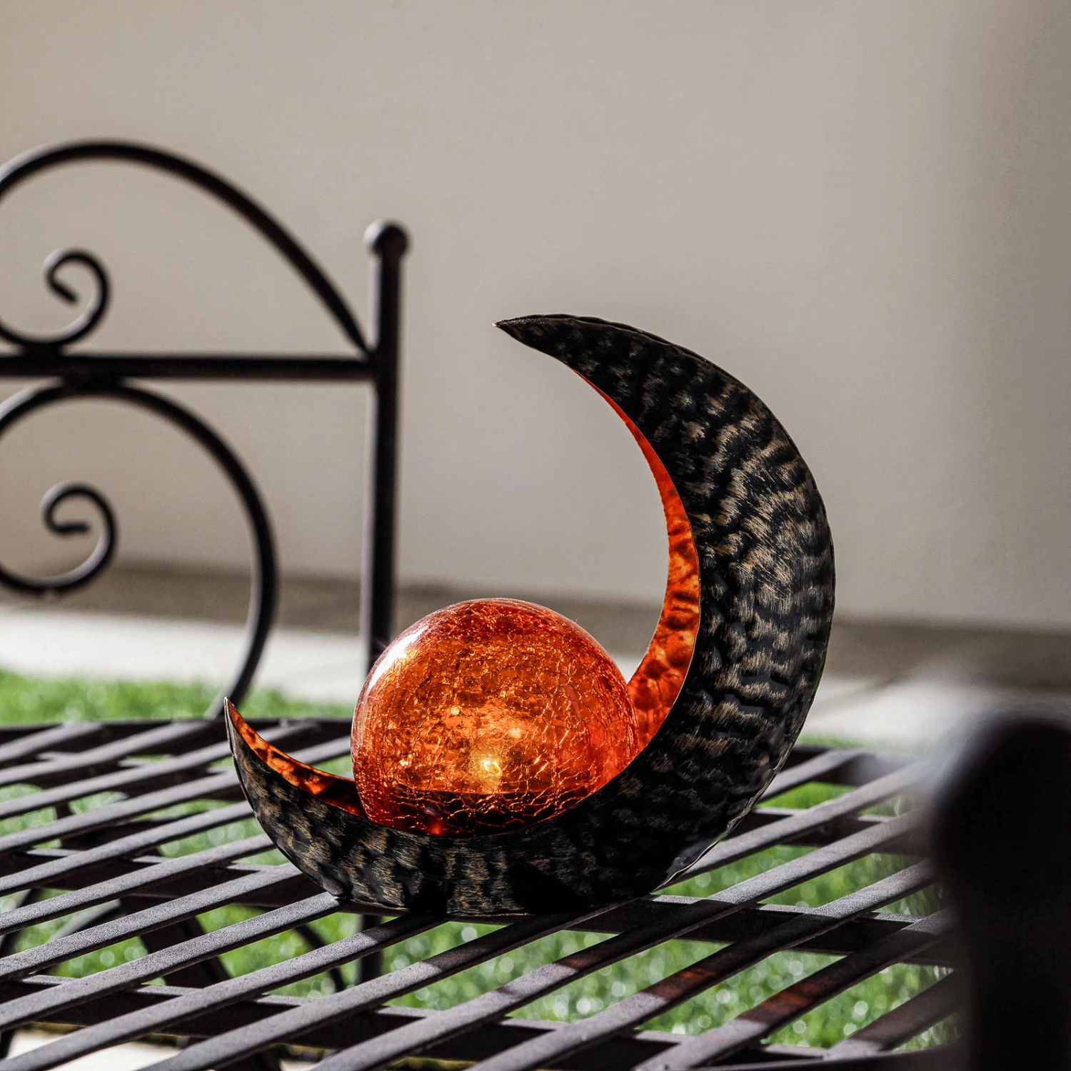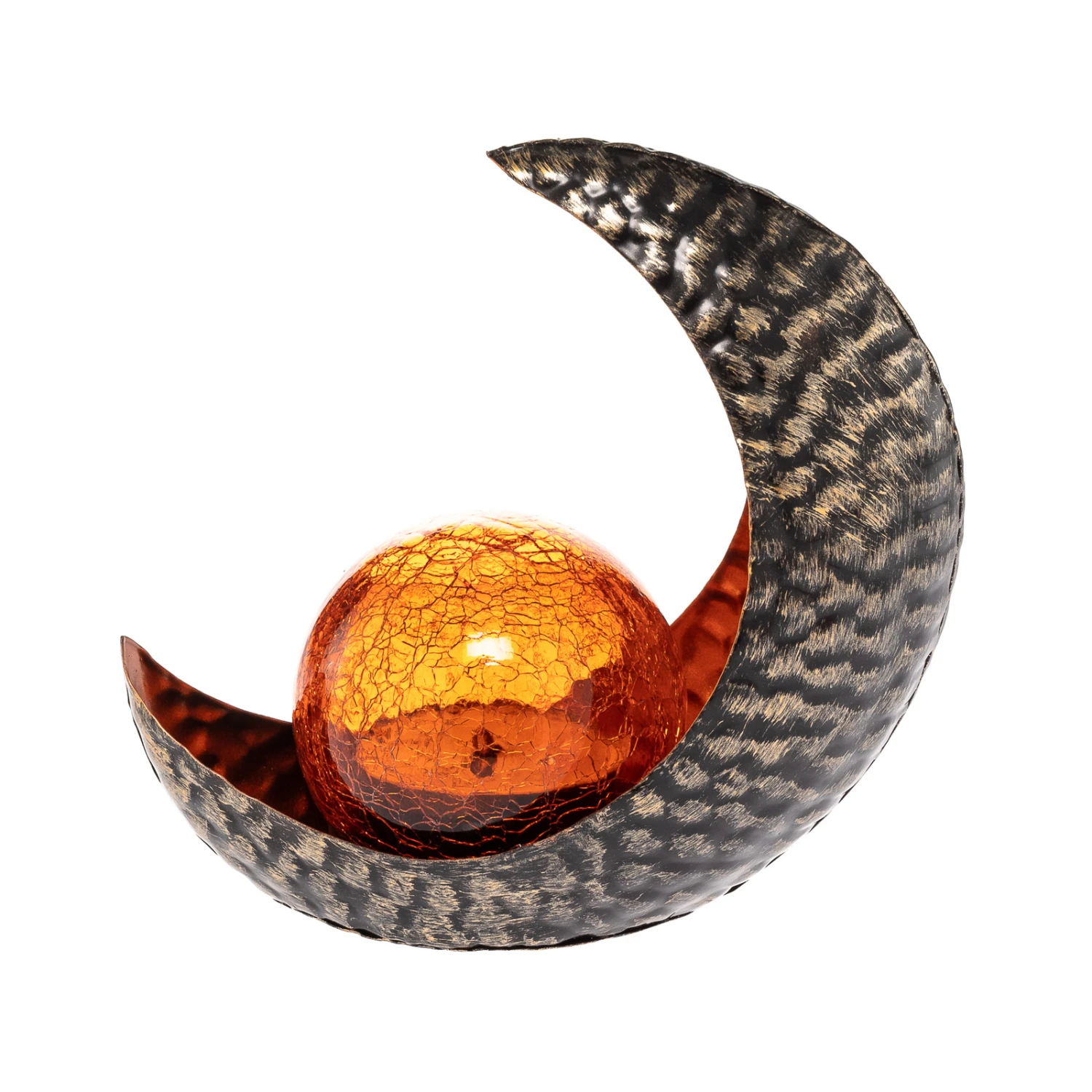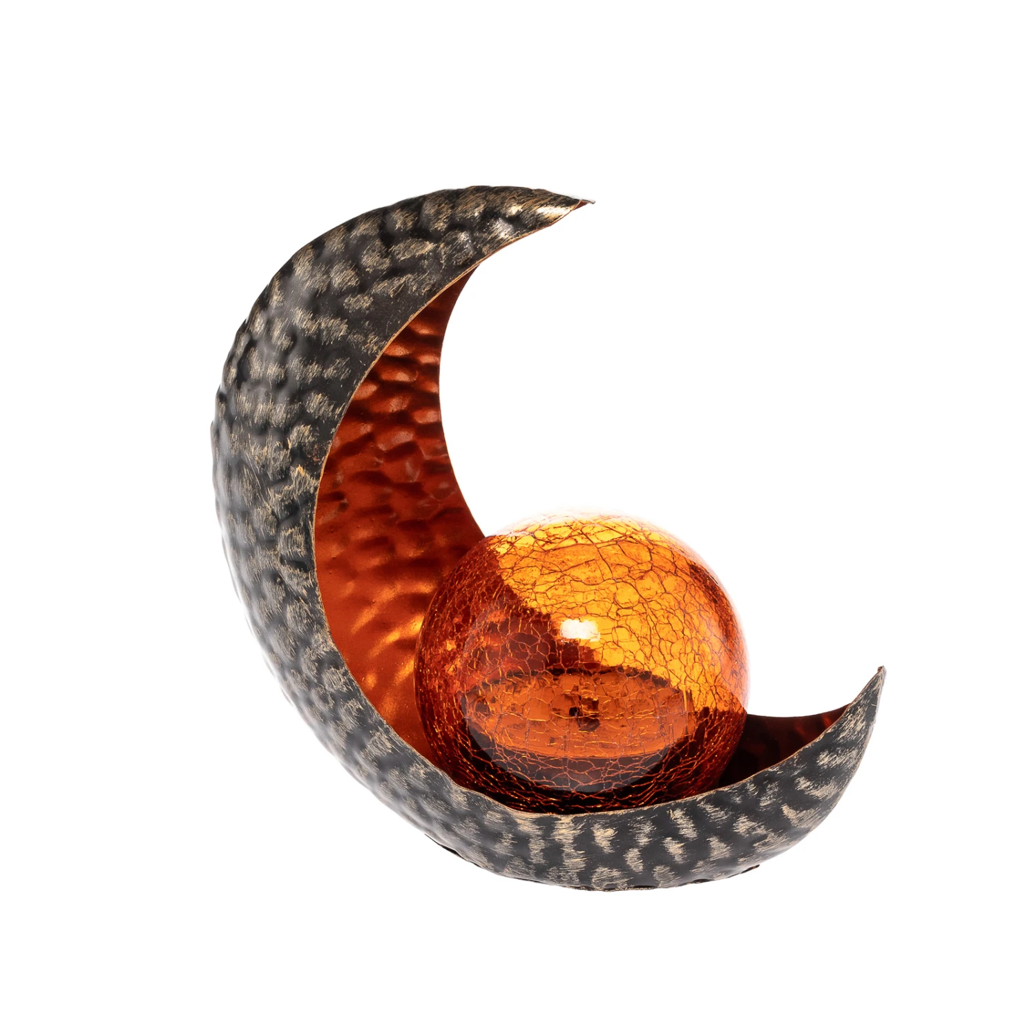 LED-Solar-Dekoleuchte Yonca in Halbmond-Form in grauer und kupferner Farbgebung