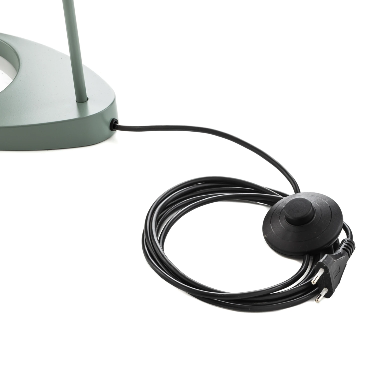 Der Fokus des Betrachters wird auf den im unteren Abschnitt als Kegel und im oberen Bereich als Zylinder gestalteten Schirm gelenkt, der das abstrahlende Licht auf natürliche Weise formt. Die Ausrichtung des Schirms kann verstellt werden kann, sodass das Licht in die gewünschte Richtung gelenkt wird. Innen ist der Schirm mit einer weißen Lackierung versehen, die für eine ideale Reflexion und effiziente Ausstrahlung des Lichts sorgt. Die Bedienung erfolgt komfortabel über den integrierten Fußschalter.