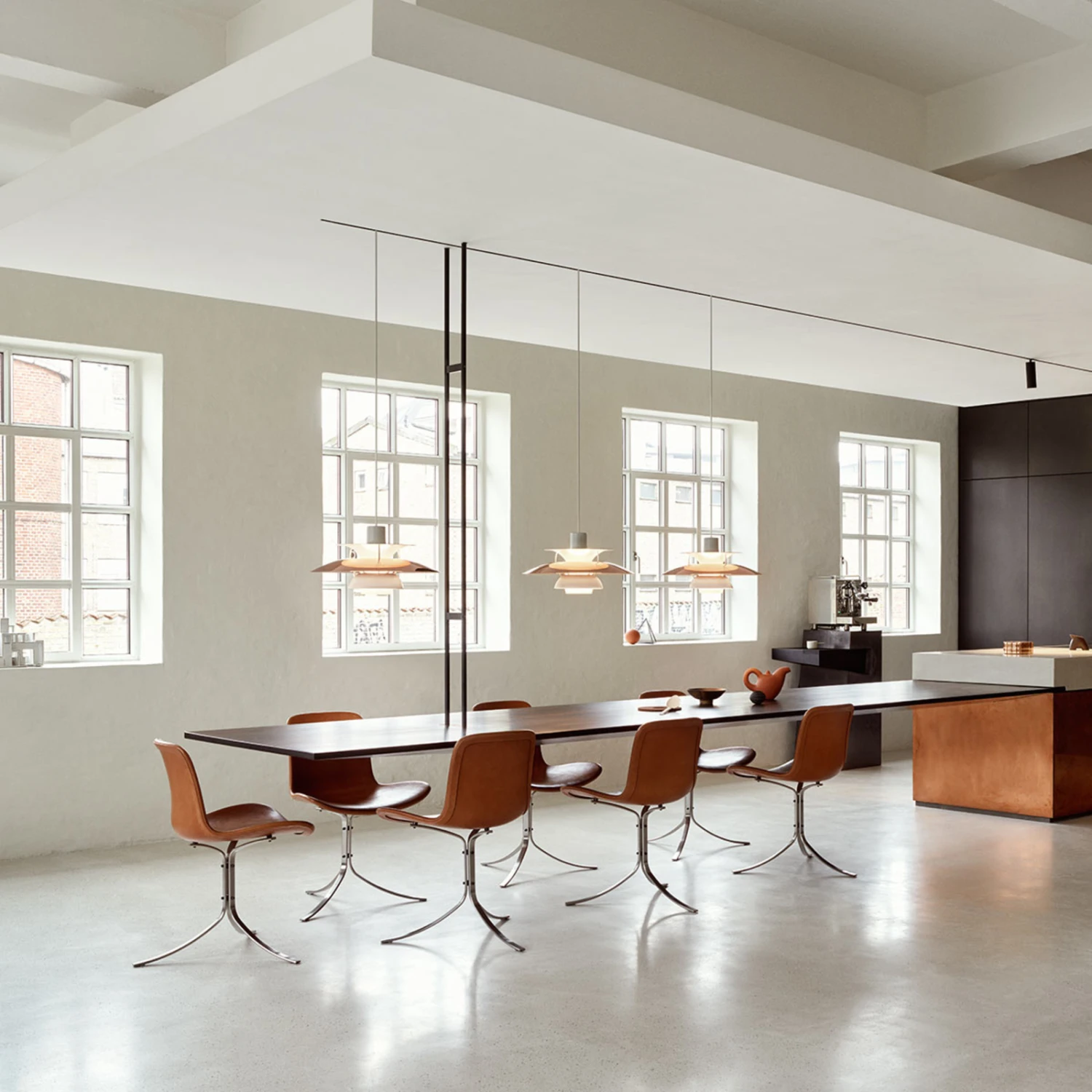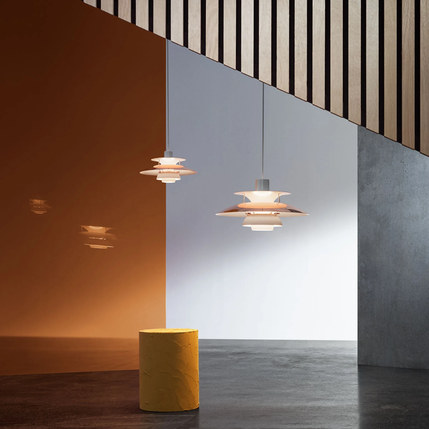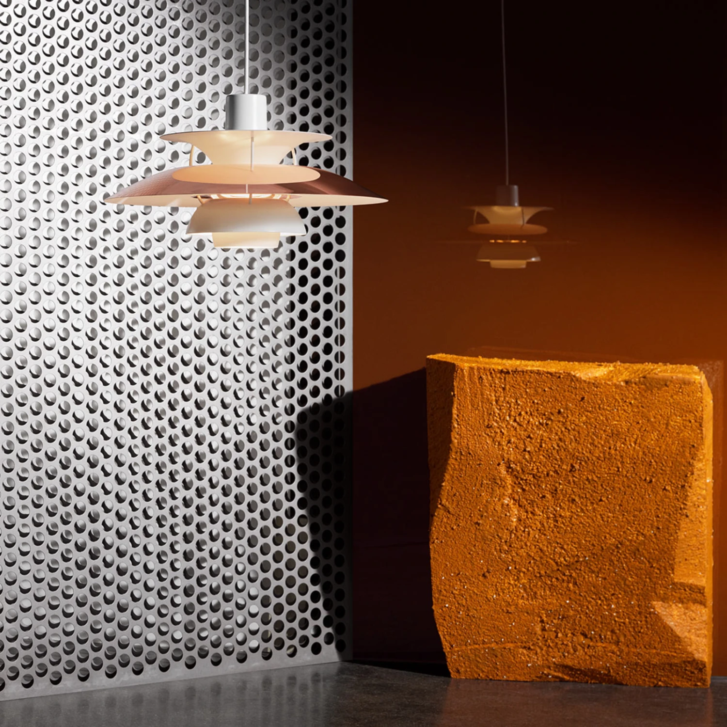 Auch 60 Jahre nach ihrem Debüt im Jahr 1958 ist die Hängeleuchte PH 5 nach wie vor das meistverkaufte Design im Portfolio des dänischen Leuchtenunternehmens Louis Poulsen, das 1874 gegründet wurde. Die ausgefeilte Mehrfachschirmtechnik bewirkt ein völlig blendfreies Licht. Die neue Metall-Edition in Kupfer und Weiß bietet die Möglichkeit der Kombination mit vielen Einrichtungsfarben und Wohnstilen. Der warme Kupferton der Oberfläche verleiht der Lichtabstrahlung zusätzlichen Glanz.