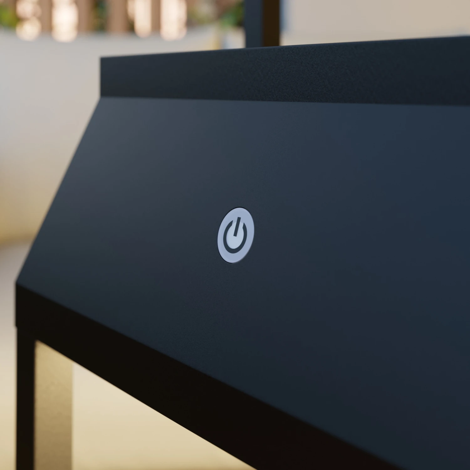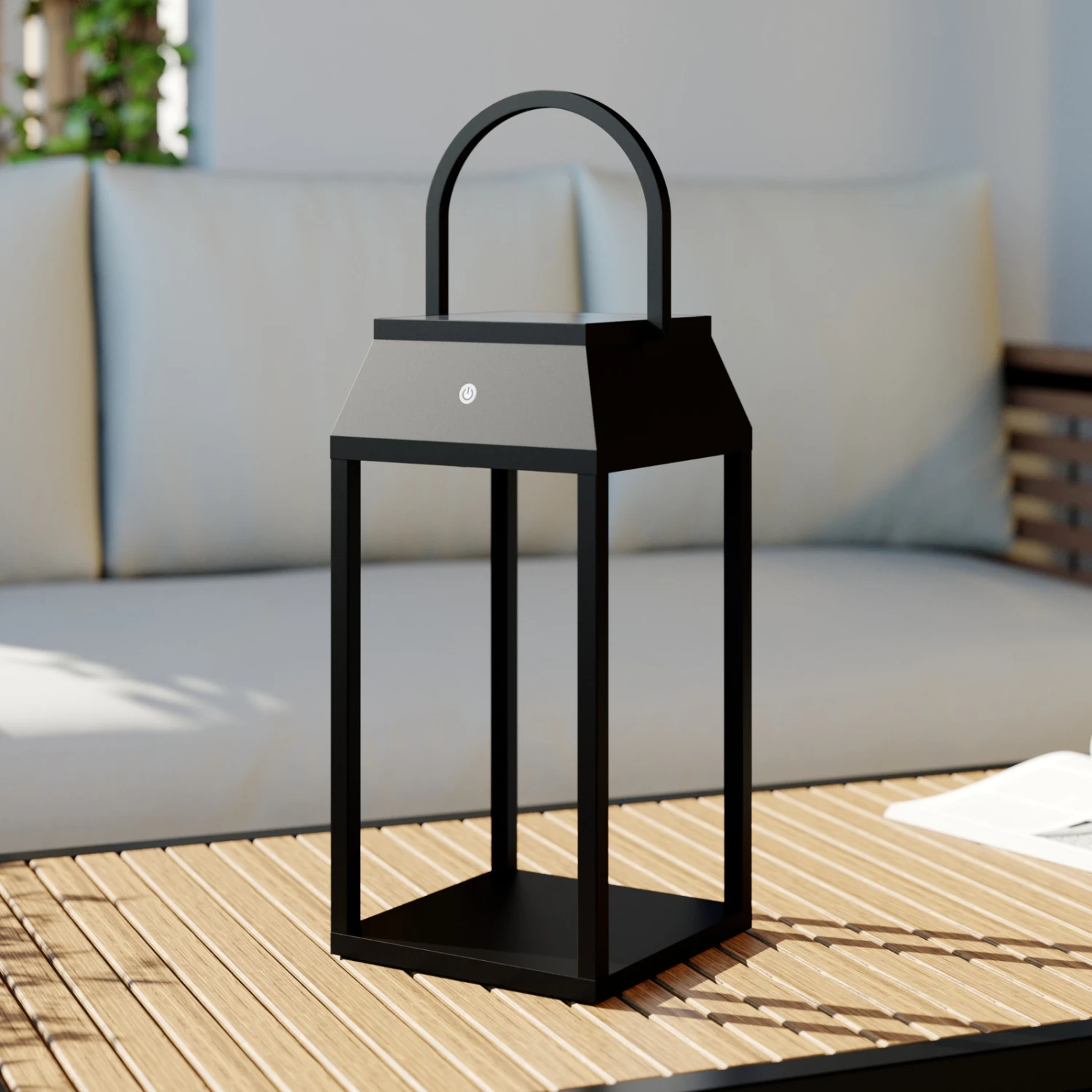 Mit der Laterne Maleos sind gemütliche Sommerabende auf der Terrasse oder im Garten garantiert. Die Laterne ist solarbetrieben und kann so beliebig umplatziert werden. Das Gestell ist ein Aluminiumdruckguss mit dunkelgrauer Oberfläche. Im Inneren der Laterne befindet sich ein LED-Leuchtmittel, das sich am oberen Ende der Laterne versteckt und die Umgebung in ein warmweißes Licht taucht. Die Helligkeit lässt sich über den integrierten Dimmer ganz individuell anpassen. Die Leuchtdauer der Laterne beträgt neun Stunden und die Batterien sind bei Tageslicht innerhalb von 17 Stunden wieder komplett aufgeladen. Über ein USB-Kabel reduziert sich die Aufladezeit auf sechs bis acht Stunden.
