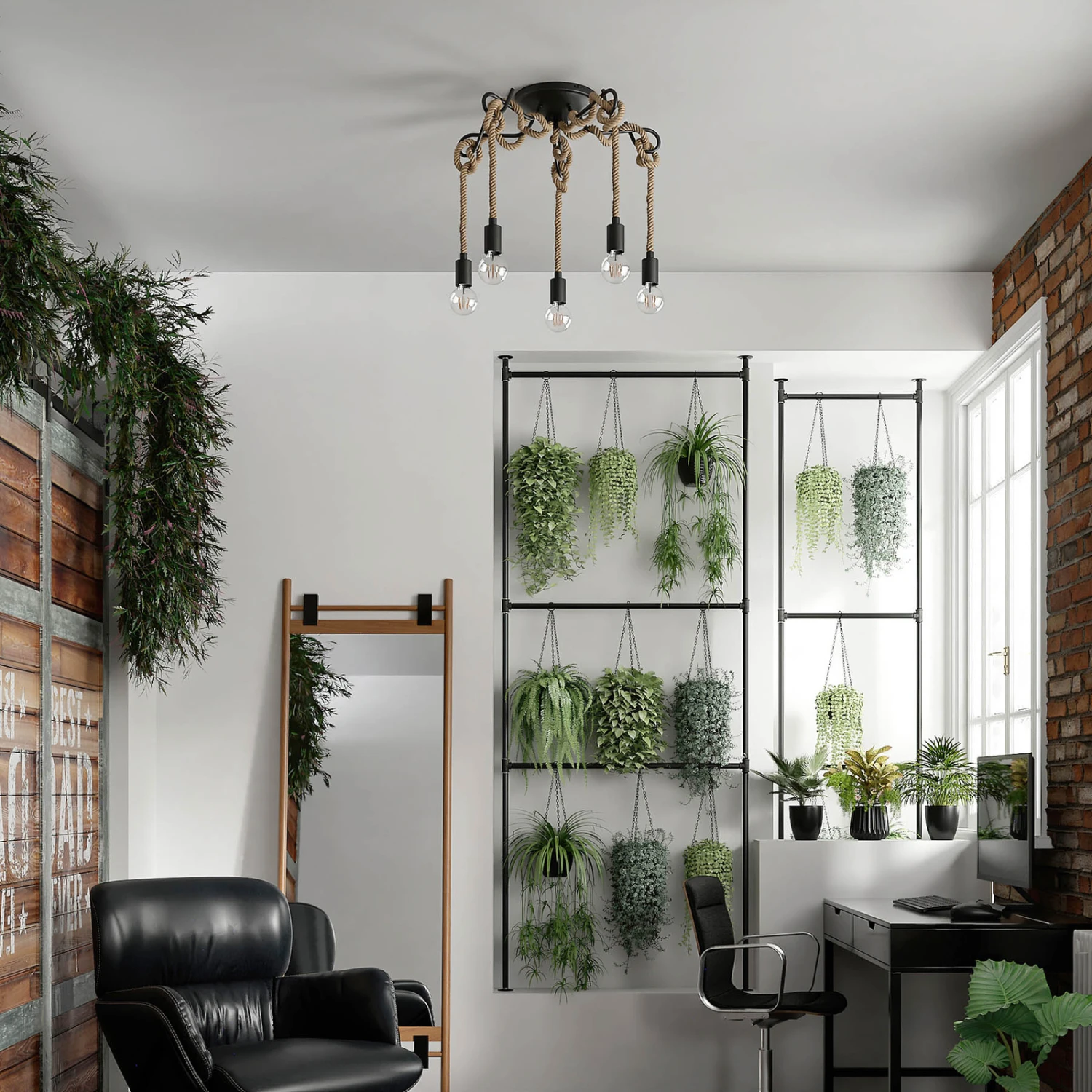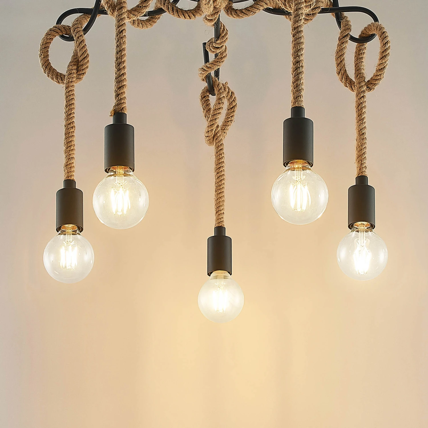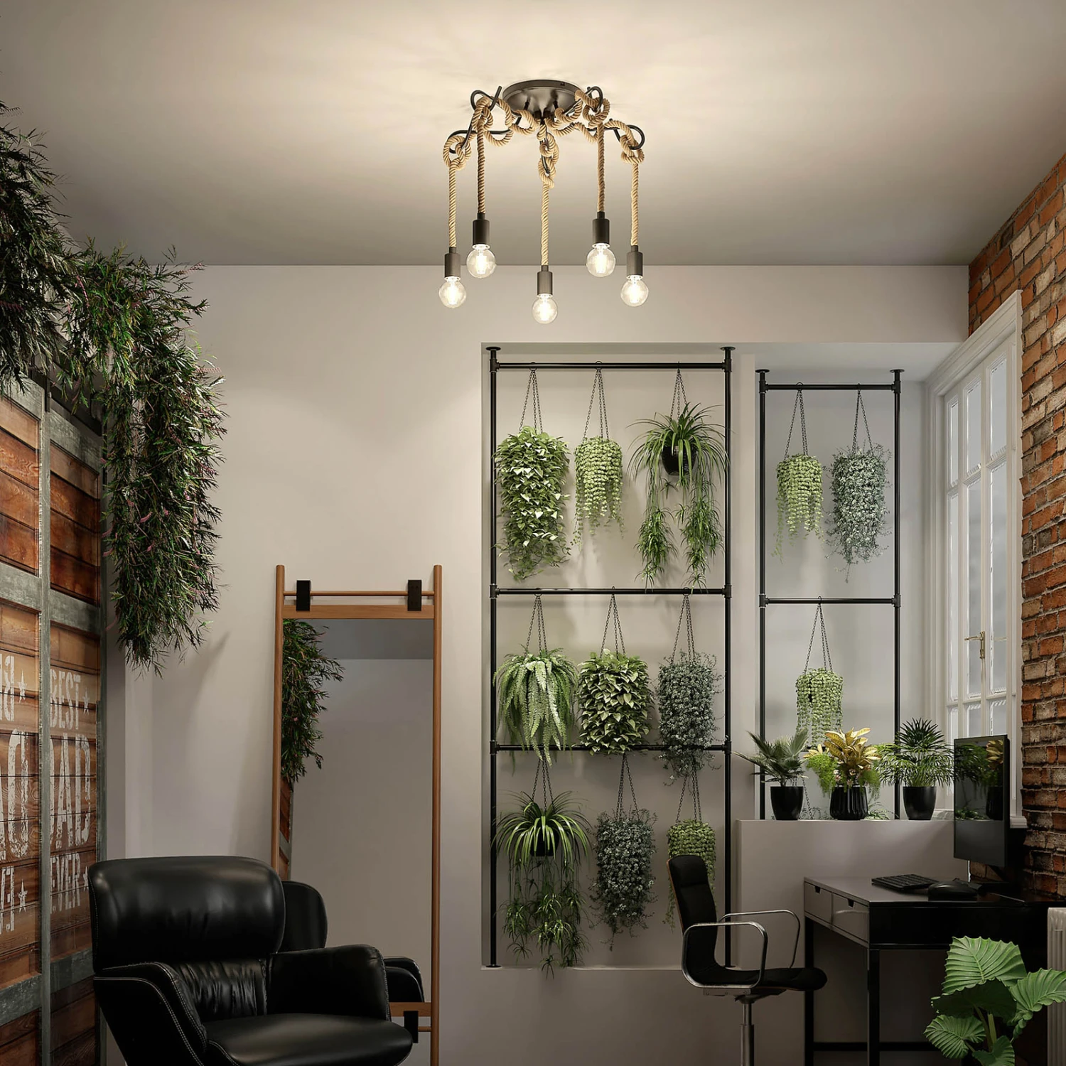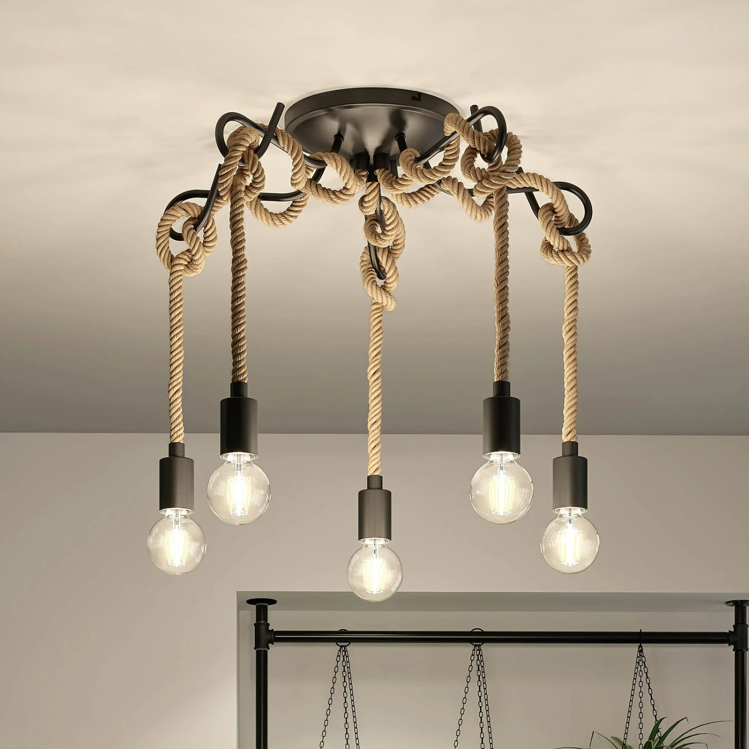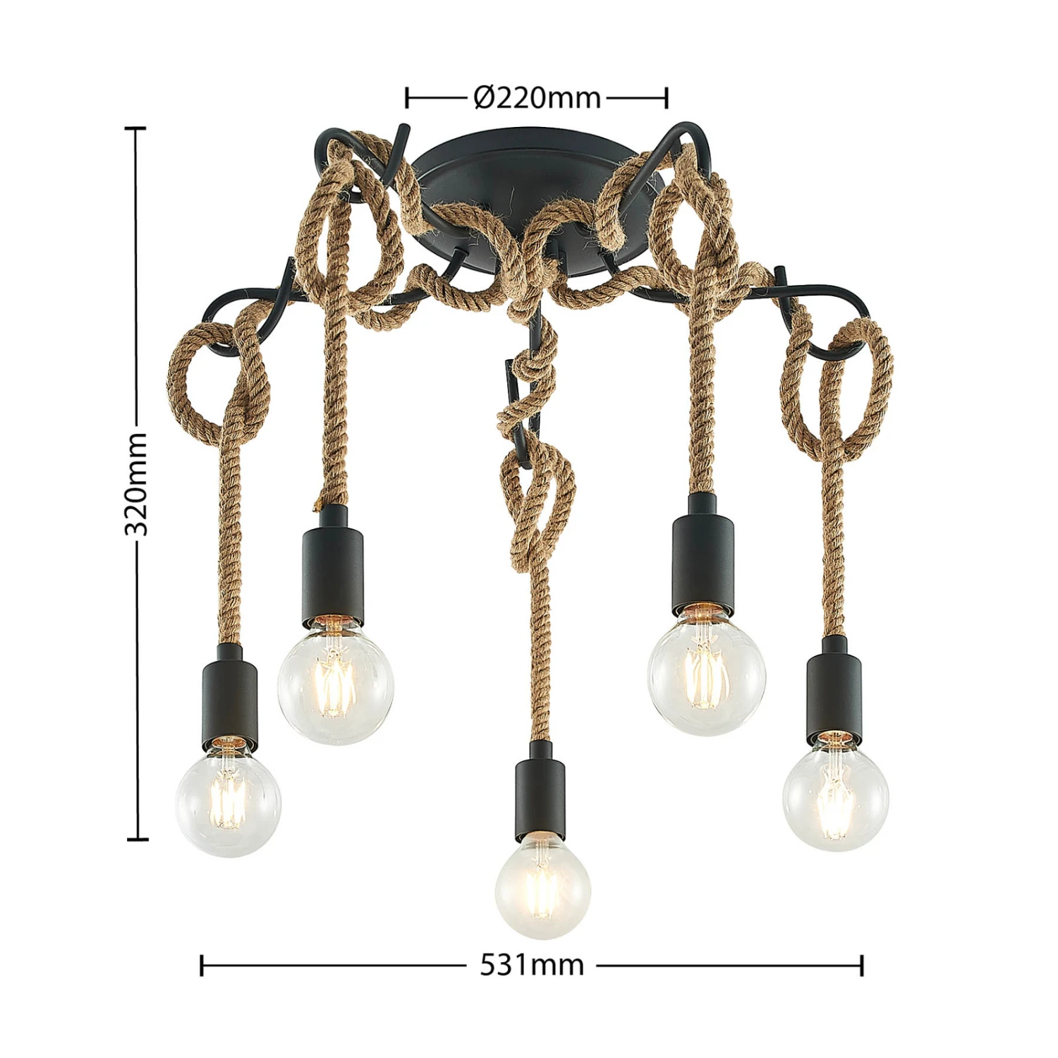 Deckenleuchte Ropina aus Eisen mit dekorativen Seilelementen