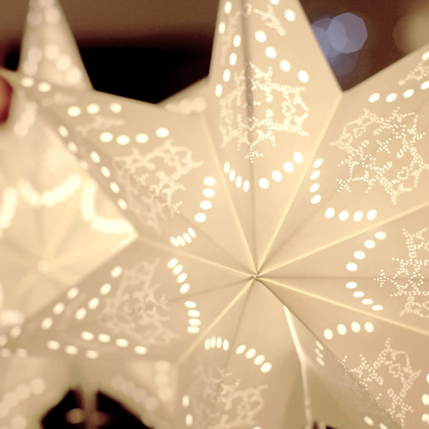 Der siebenzackige Stern Sensy besteht aus cremefarbenem Papier und ist mit einem attraktiven Muster versehen, das unbeleuchtet kaum zu sehen ist. Sobald das Licht eingeschaltet wird, rückt es sofort in den Fokus und verzaubert den Betrachter mit seiner Schönheit. Mit E14-Fassung ausgestattet: Leuchtmittel nicht enthalten – über Zubehör bestellbar. Das schlichte Metallgestell betont die tolle Optik des Sterns. Eine Weihnachtsdeko, die auch mit einem modernen Wohnambiente harmoniert.