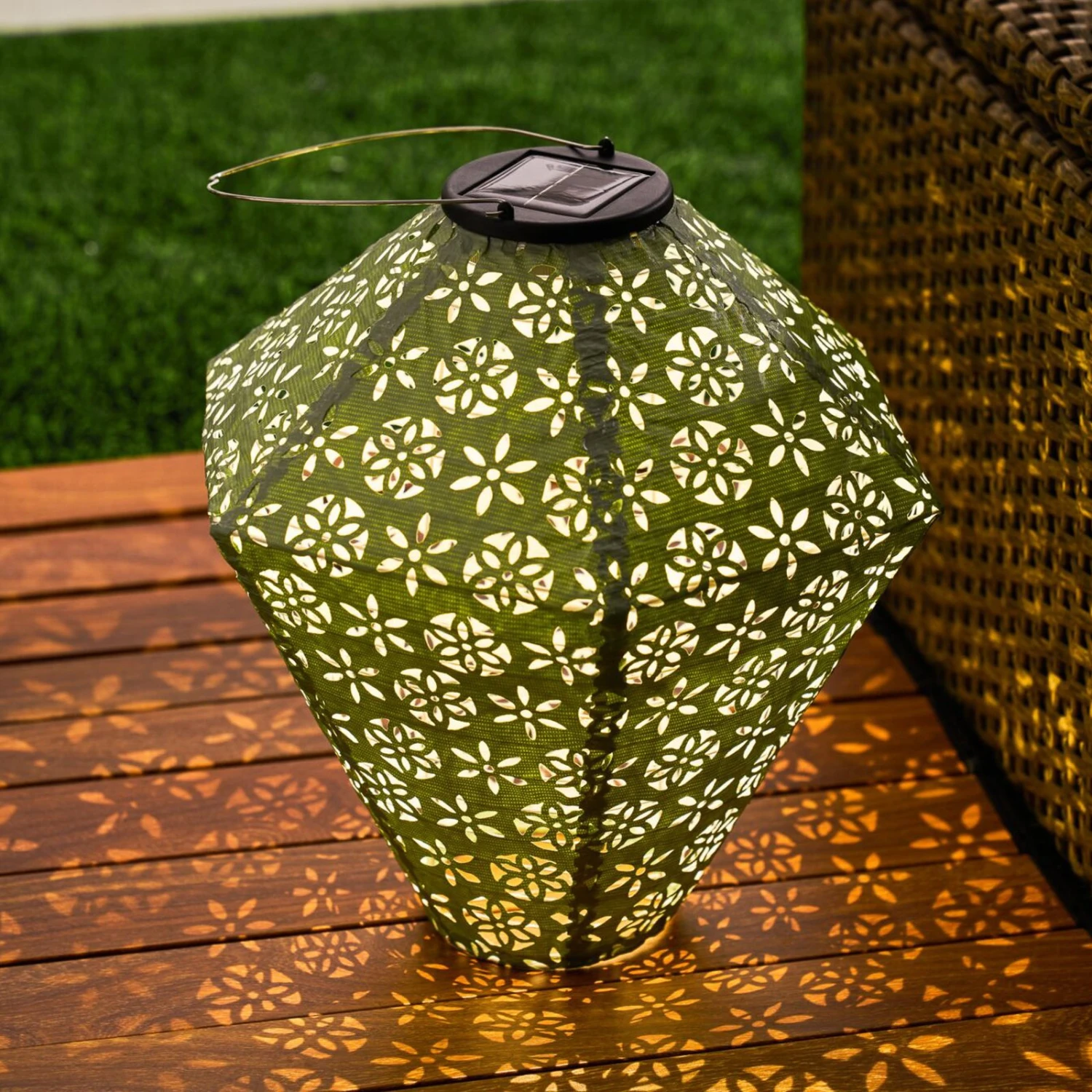 Die LED-Solar-Laterne Sunshine Flower aus grünem Tyvek® Polyethylenvlies ist ein wahres Highlight für den Outdoor-Bereich. Durch ihre perfekte Inszenierung im Garten verleiht sie dem Zuhause einen besonderen Charme. Tagsüber fügt sie sich harmonisch in die natürliche Umgebung ein und bei Dunkelheit erzeugt sie wunderschöne Lichteffekte. Mit dem Griff lässt sich die Dekoleuchte in Bäume oder an Überdächer einfach aufhängen. Dank eines zusätzlichen kürzeren Bügels ist auch das Aufhängen an Erdspießen oder an Stäben zum Laterne gehen mit den Kindern in der Herbstzeit möglich. Mit dem sanften Licht sorgt Sunshine Flower für eine angenehme Stimmung und lädt zum Verweilen ein. Die Solar-Laterne ist mit einem Akku ausgestattet, der per Solarmodul an der Oberseite tagsüber aufgeladen wird. Bei Dämmerung schaltet sich das Licht automatisch ein. Die Leuchtdauer beträgt bis zu 6 Stunden je Ladung. Spritzwassergeschützt gemäß IP44.