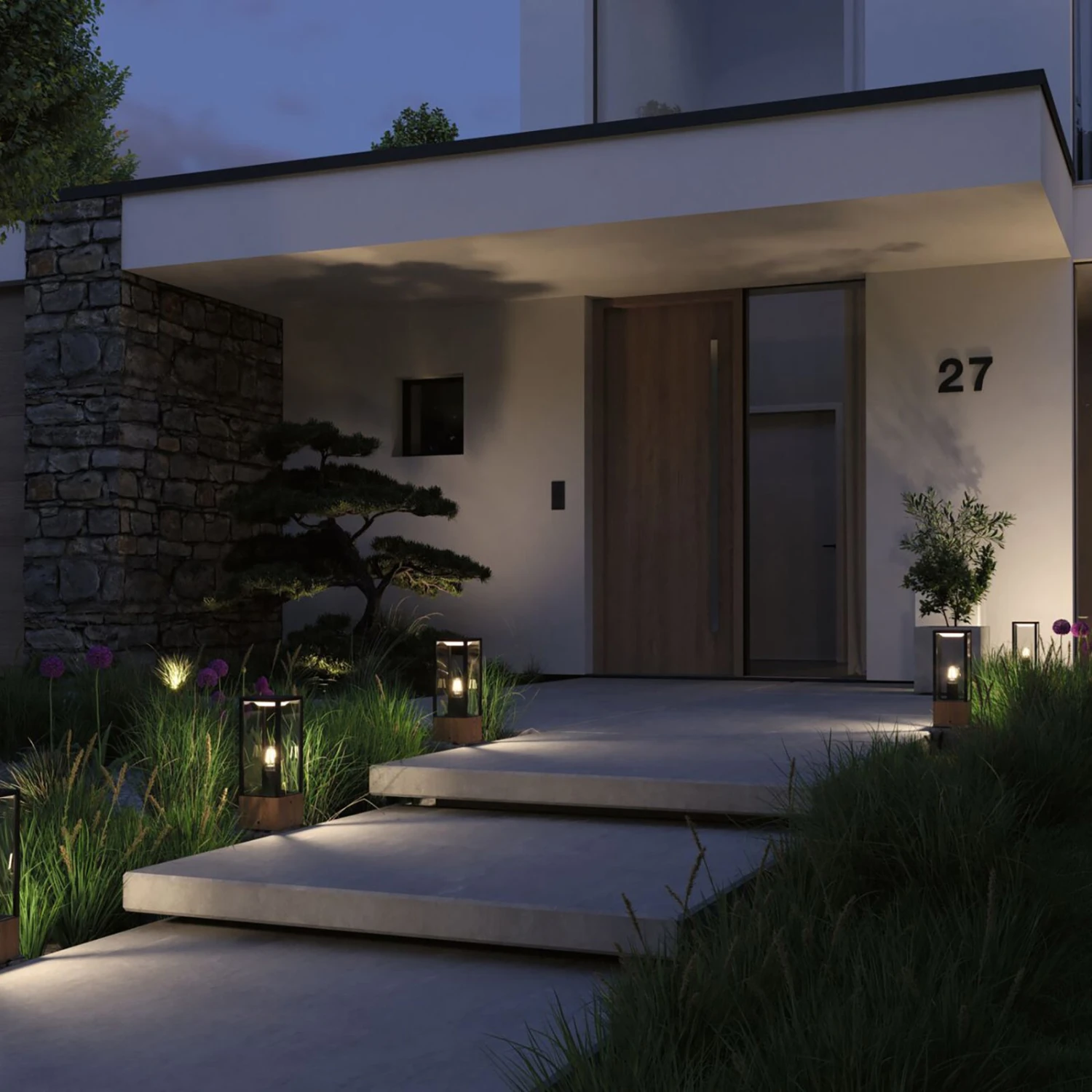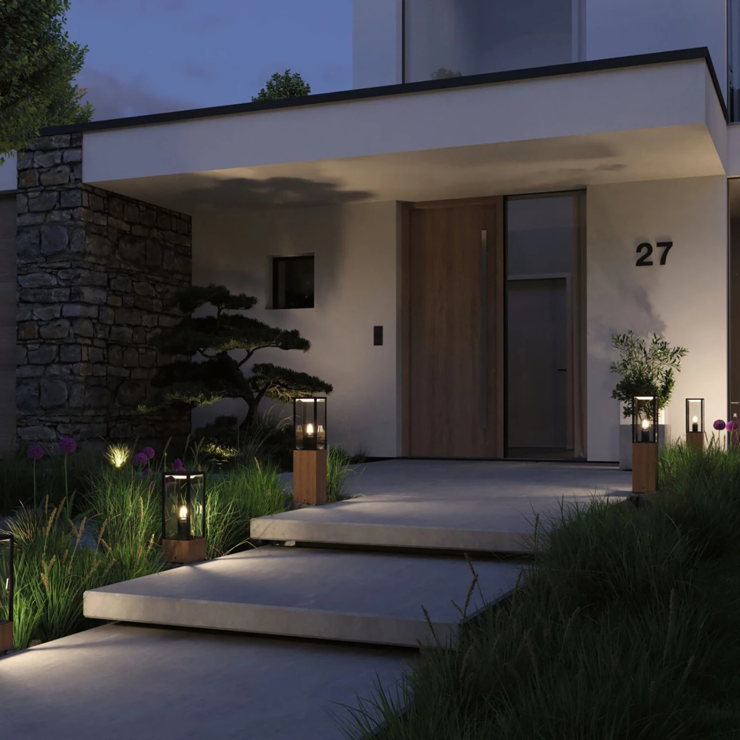 LED-Sockelleuchte Plug & Shine Venea im modernen Laternendesign