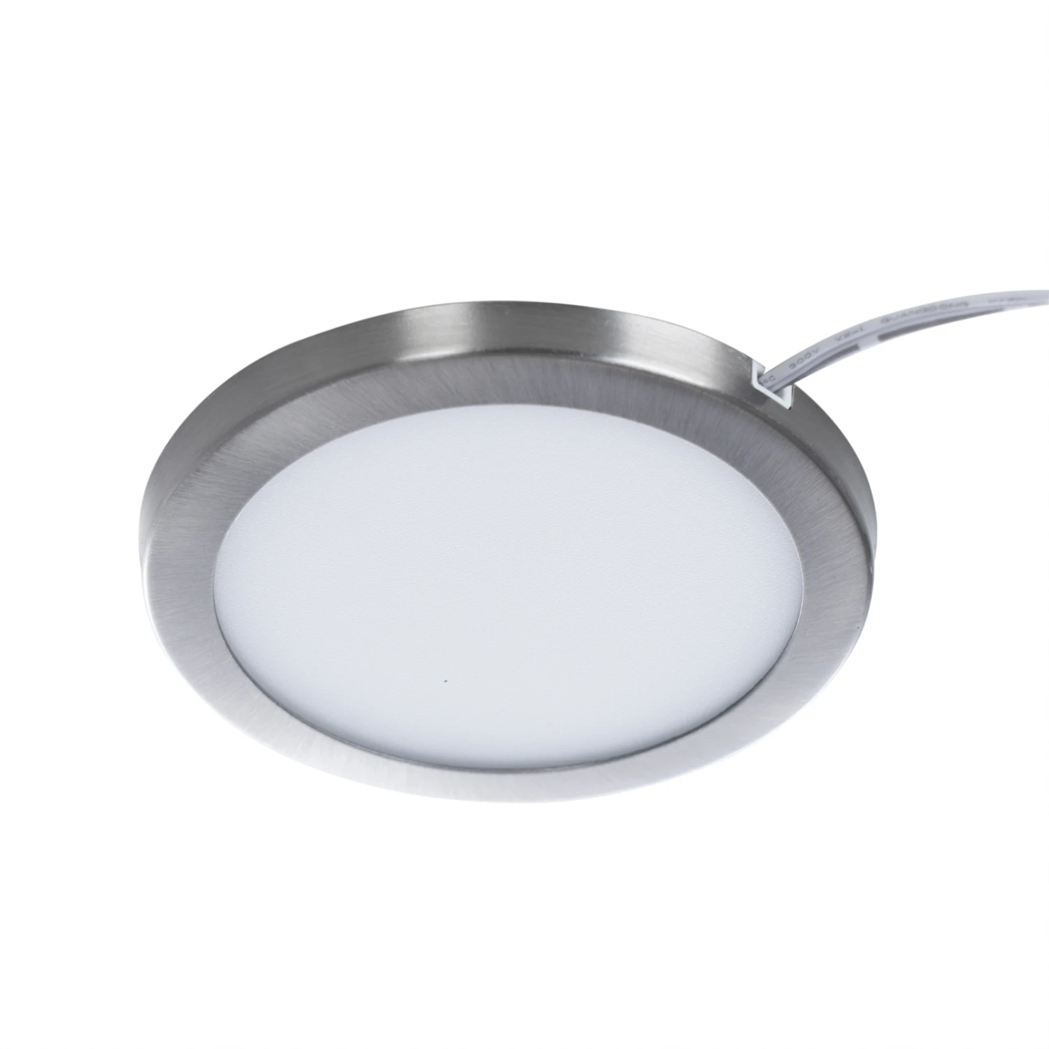 Diese runde Möbelauf- bzw. -unterbauleuchte eignet sich sehr schön als Unterschrankleuchte für viele Zwecke und sie wird hier im praktischen 4er-Set geliefert. Die Einzelleuchten sind jeweils rund und in einen satinierten Nickelrahmen eingefasst, so dass das Design angenehm modern anmutet. Die Leuchten, die hier im Set angeboten werden, können neben dem Ein- und Ausschalten auch in drei Stufen gedimmt werden (15% – 50% – 100%).