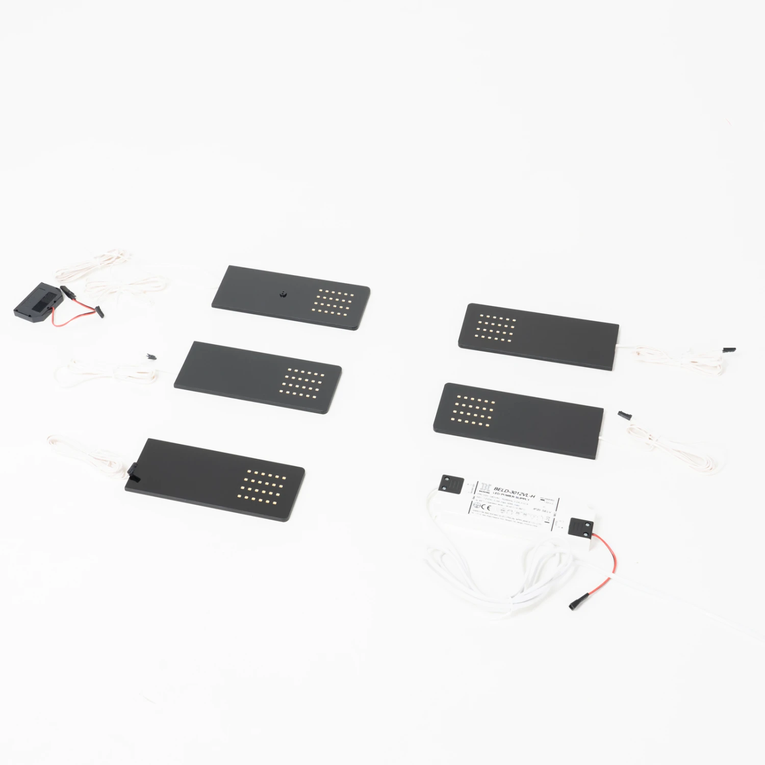 Modernes Set aus 5 LED-Unterbauleuchten: die schwarzen Unterschrankleuchten Rixa