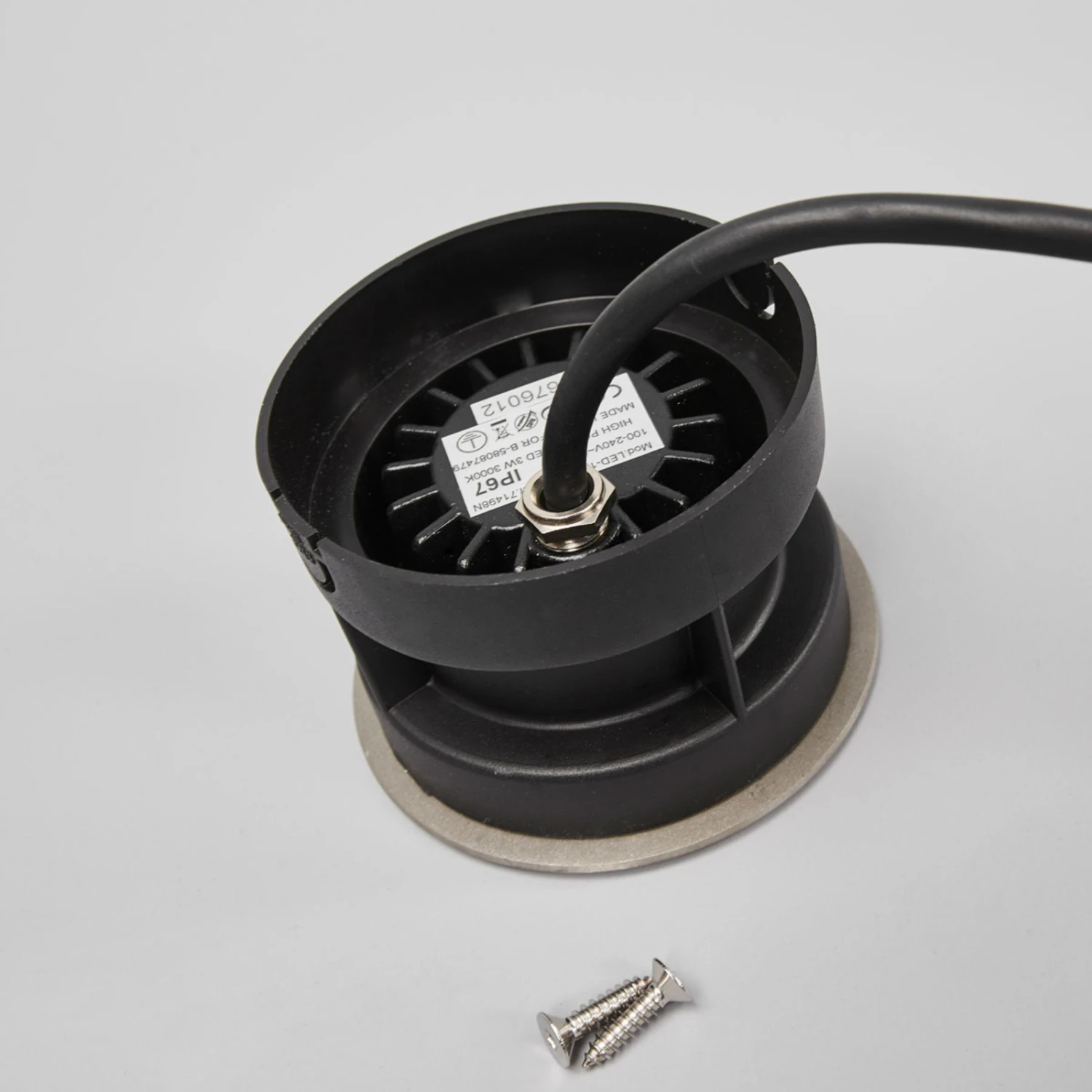 Eine Traglast von maximal 1.000 Kilogramm hält die LED-Bodeneinbauleuchte LED-18 aus. Somit ist sie besonders gut für Einfahrten geeignet. Auf einem hellen Untergrund ist sie aufgrund der nickel matten Blende und dem weißen Polycarbonat-Diffusor nur dezent sichtbar. Mit 6.000 Kelvin spenden die LEDs helles Tageslicht.