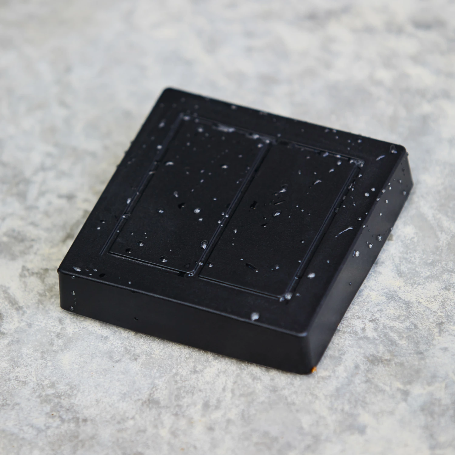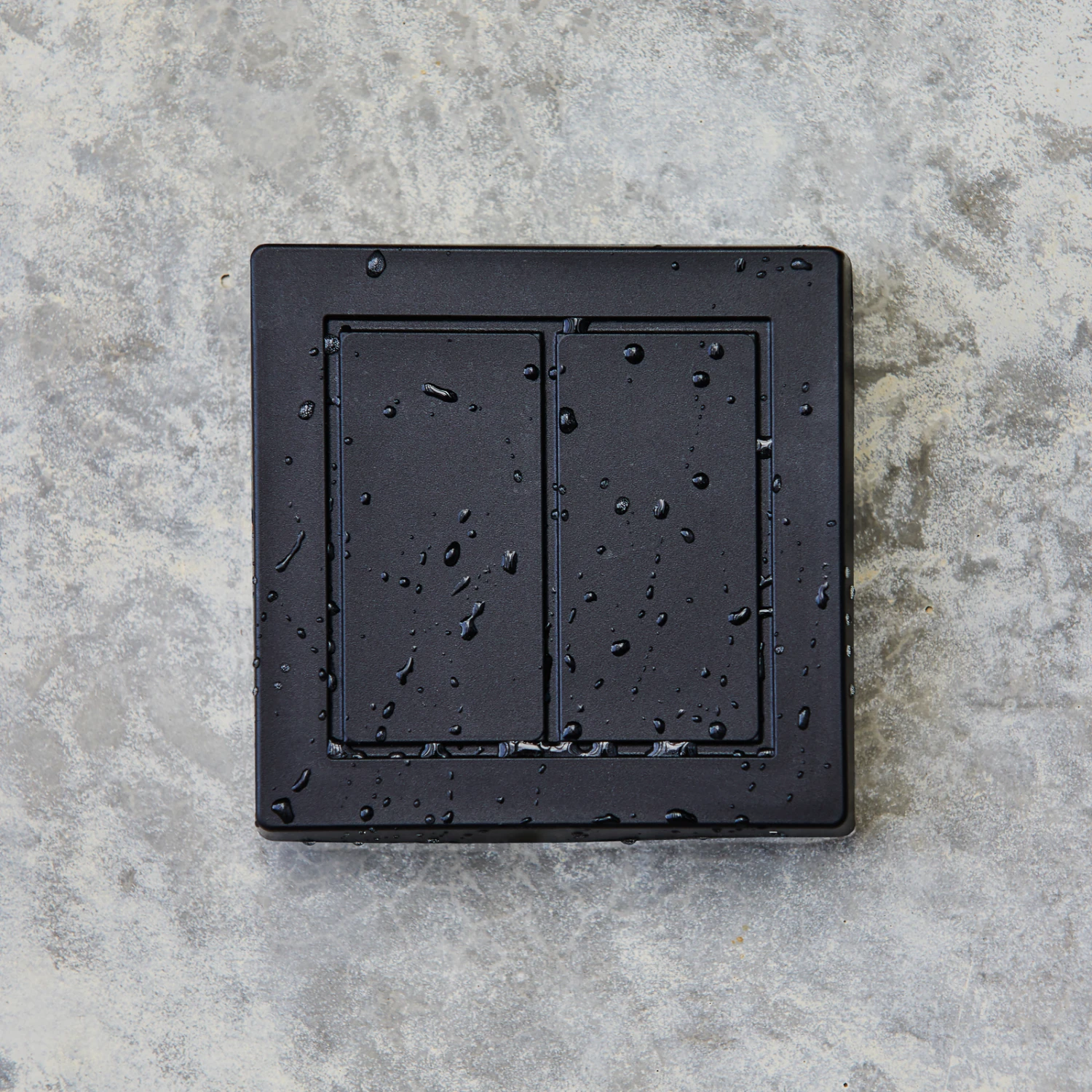 Dieser Schalter für den Außenbereich kommt dank der Energy Harvesting-Technologie ohne Batterie oder Stromanschluss aus; die Betätigung mit dem Finger genügt, um die erforderliche Energie für das Funksignal zu erzeugen.