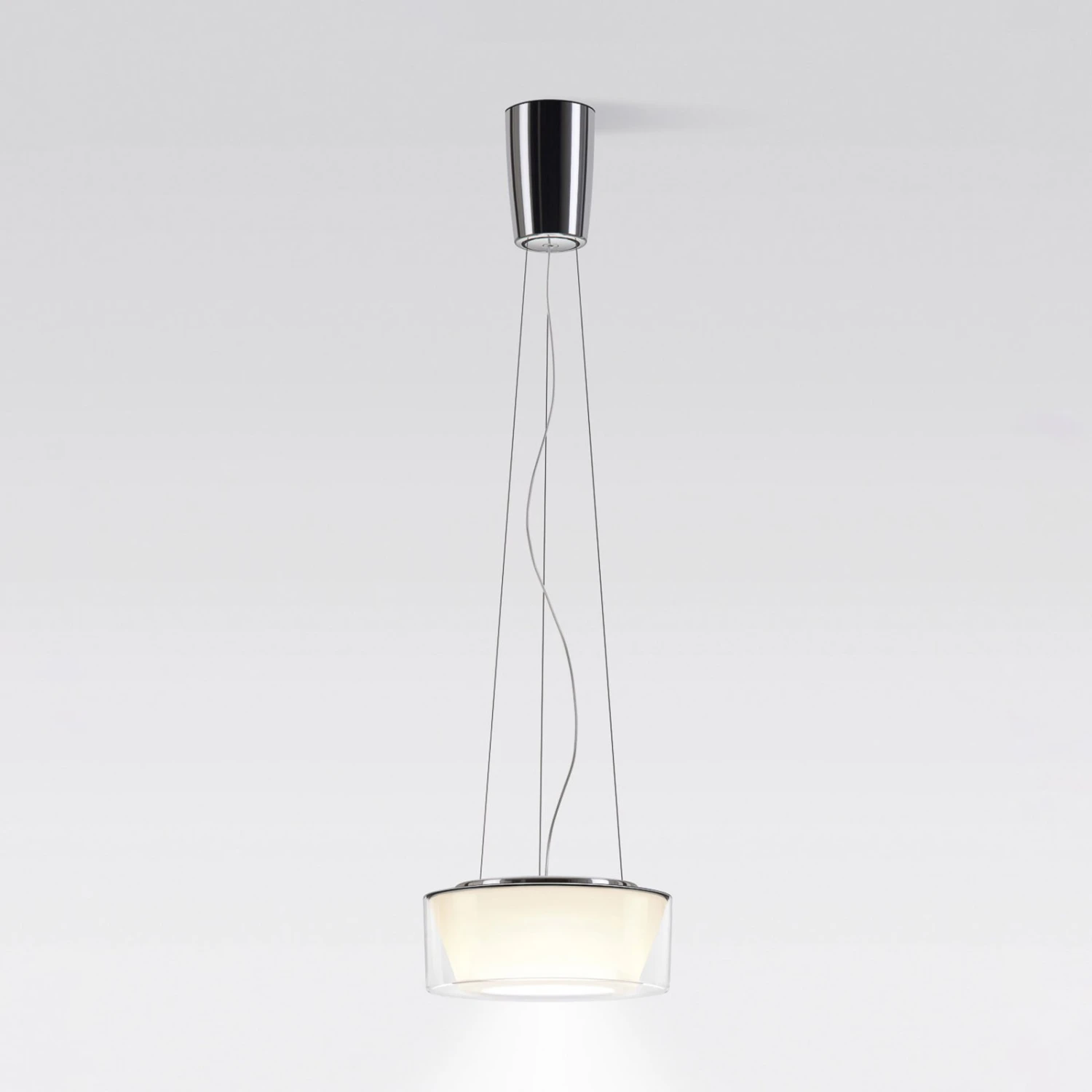 Diese Version beinhaltet einen aus Acryl bestehenden Schirm sowie einen konischen Innenreflektor, der aus opalem Polycarbonat hergestellt ist. So wird das warmweiße, mit hervorragender Farbwiedergabe überzeugende Licht sanft nach oben und seitlich abgegeben. Auch nach unten hin strahlt es durch einen zusätzlichen, lichtstreuenden Diffusor.