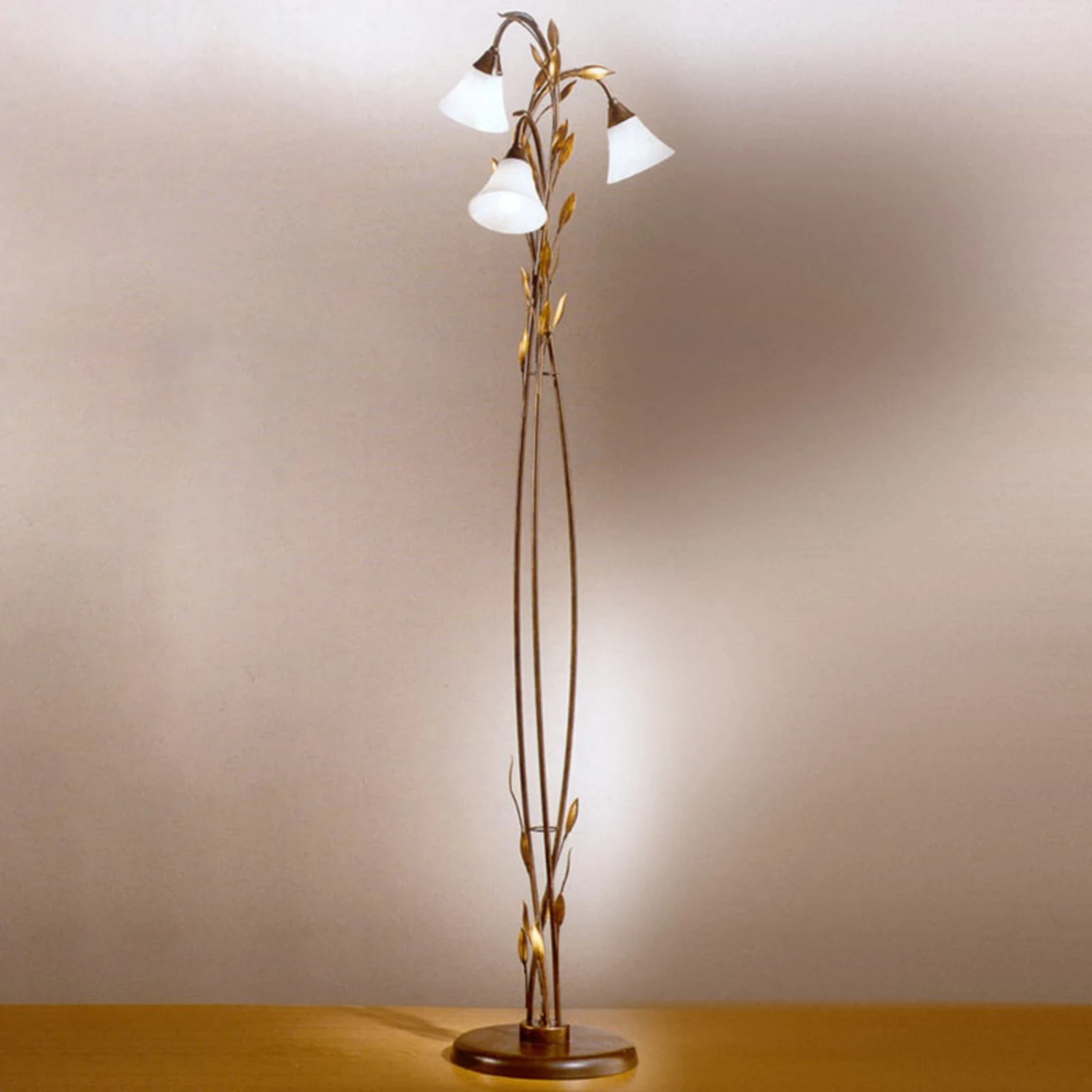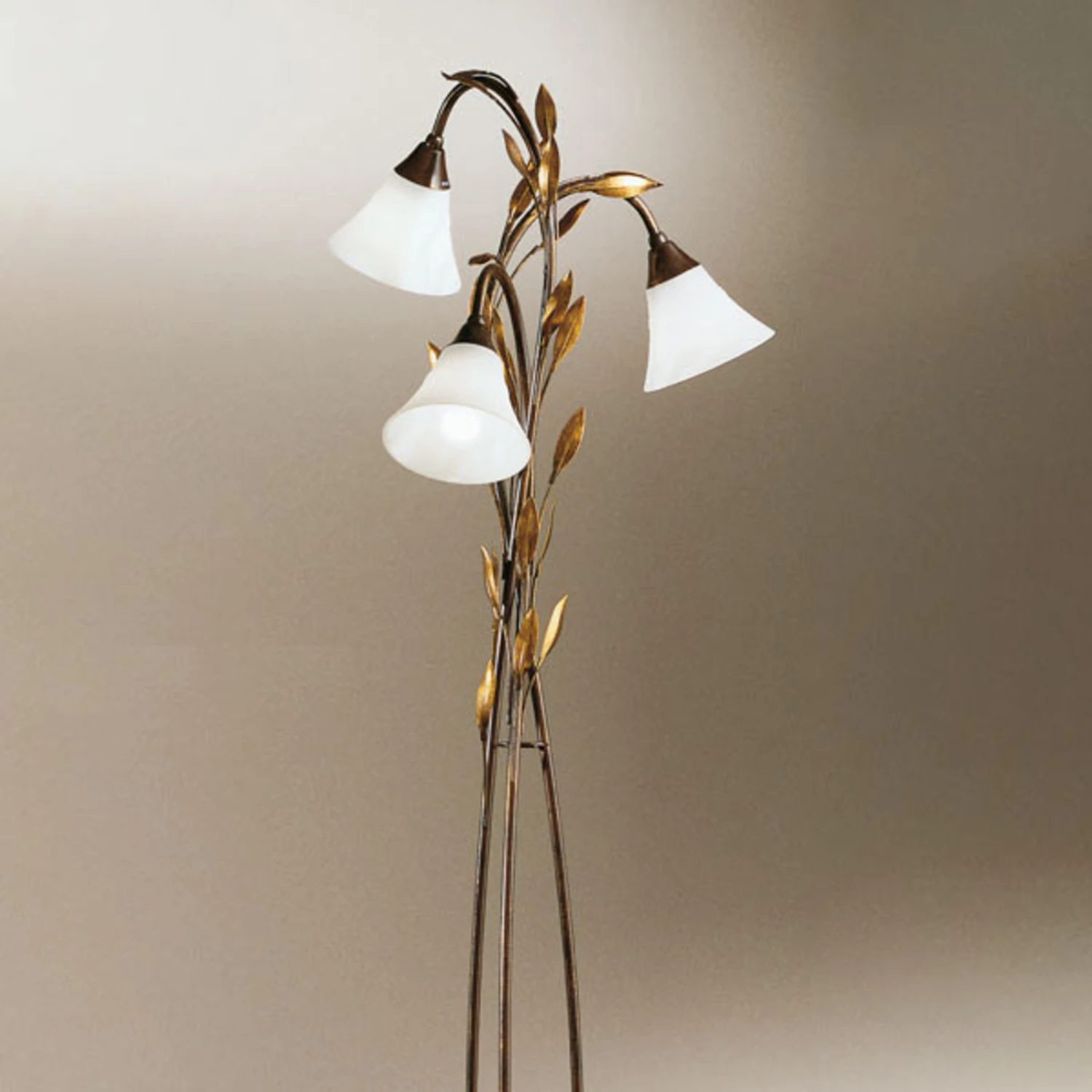 3-flg. Stehleuchte Campana in Gold patiniert