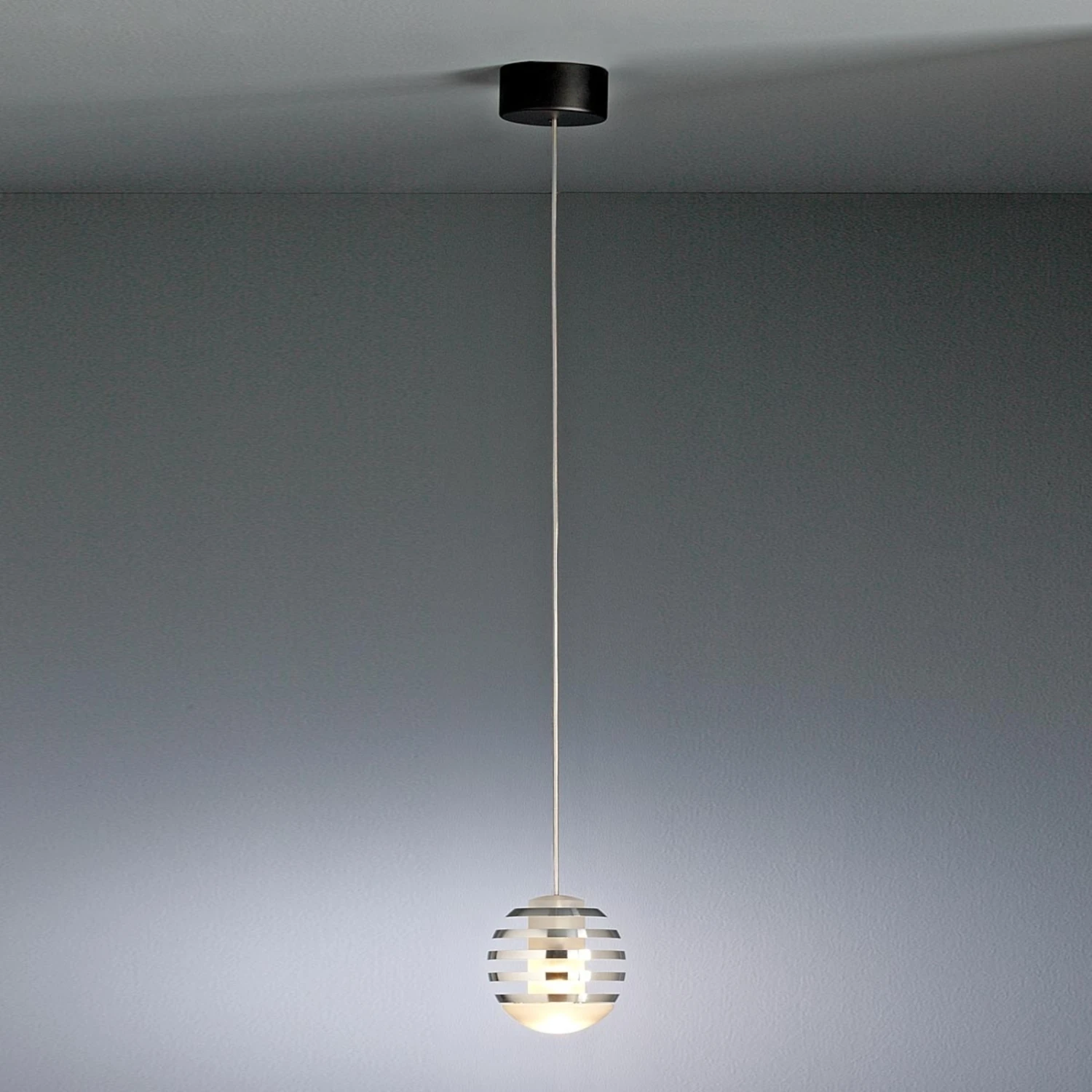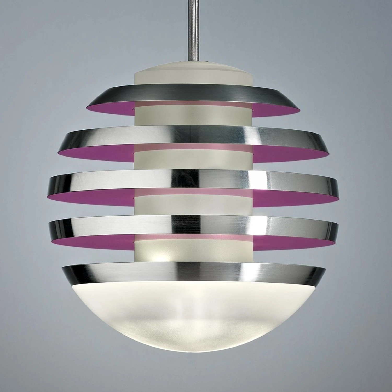 Diese Hängeleuchte, entworfen von Professor Oliver Niewiadomski, begeistert mit ihrem aus mehreren Lagen bestehenden Leuchtkörper, bei dem besonders die gezielt gesetzten Farbakzente in den Blick fallen. Das kreativ gestaltete Design drückt der harmonischen Kugelform den Stempel der Besonderheit auf.