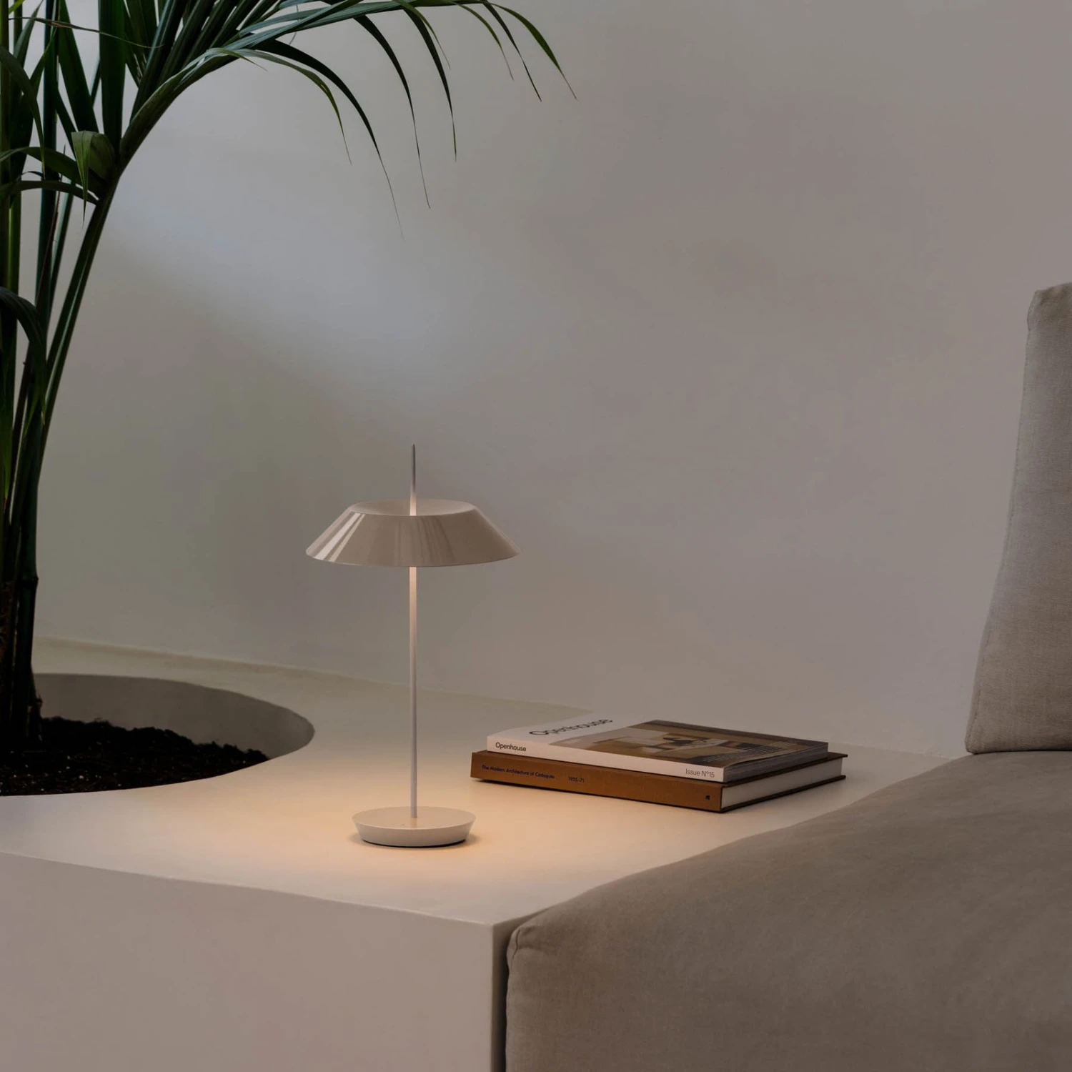 Die Mini-Variante der Tischleuchte Mayfair ist mit Akkus ausgestattet und wird mit einem USB-Kabel sowie einem Netzteil mit Wechseladapter geliefert, so dass die Leuchte überall in der Wohnung unabhängig von Steckdosen platziert werden kann. Die Lichtintensität kann mit Hilfe des Touchdimmers in drei Stufen reguliert werden (25%, 50%, 100%). Die Leuchtdauer beträgt je nach Dimmstufe 24h, 12h oder 6h.