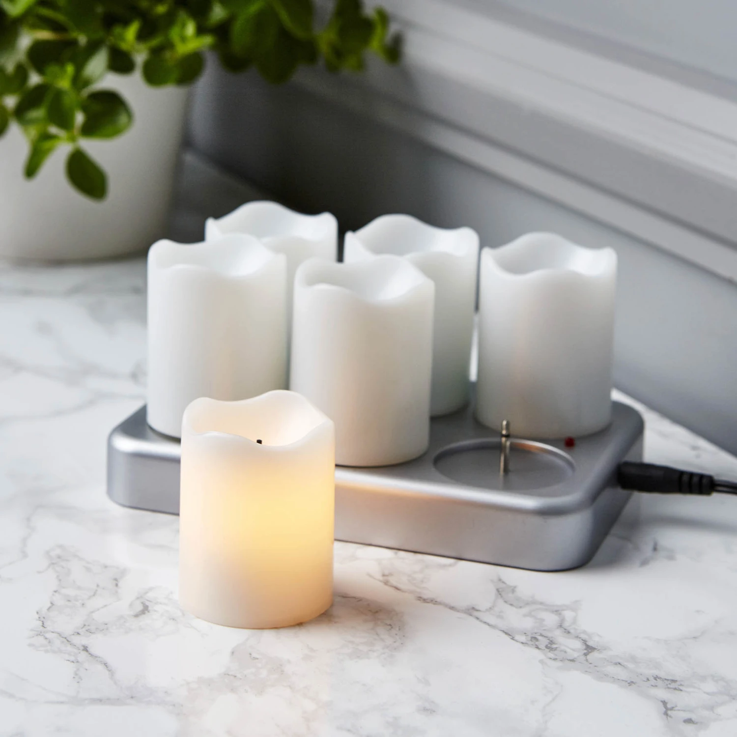 LED-Kerze Chargeme inkl. aufladbarem Akku – Sechser-Set mit Ladestation